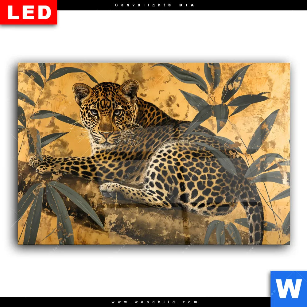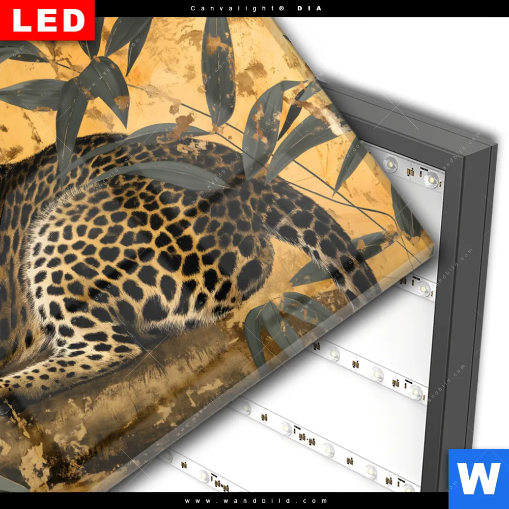 Wechselmotiv Acrylglas Canvalight® DIA | Goldener Leopard - Imposanter Jäger | Querformat