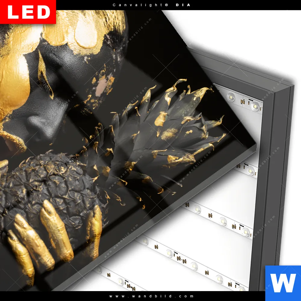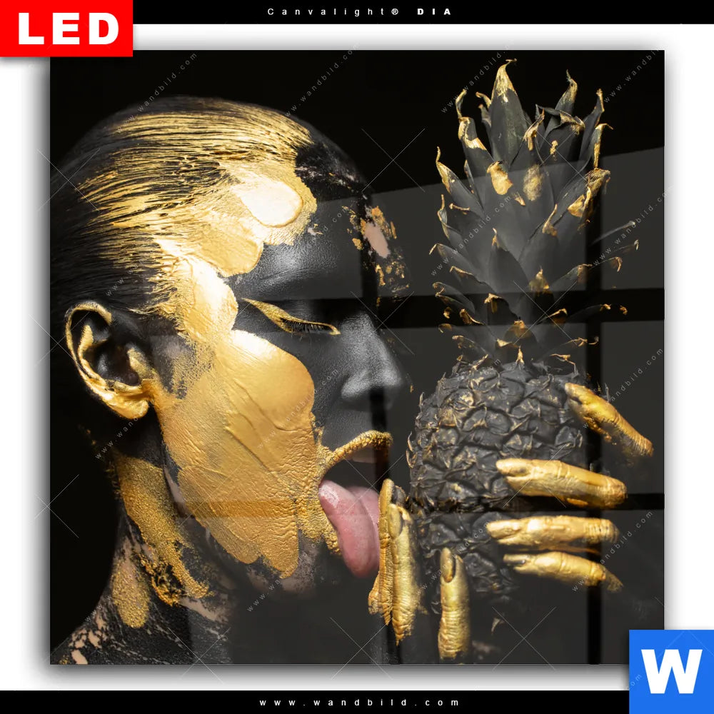 Wechselmotiv Acrylglas Canvalight® DIA | Goldenes Ananasmädchen No.2 | Quadrat
