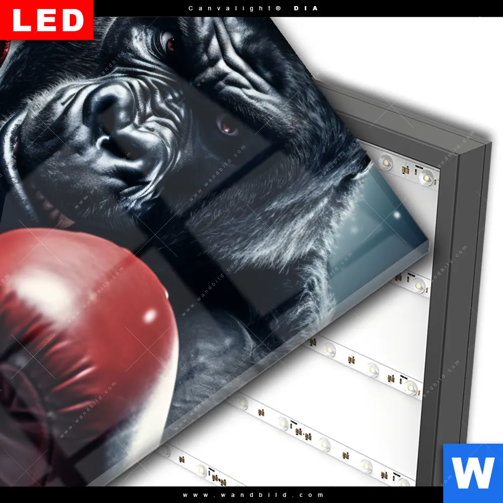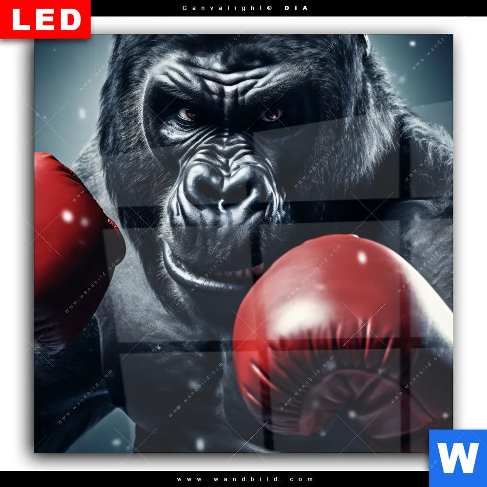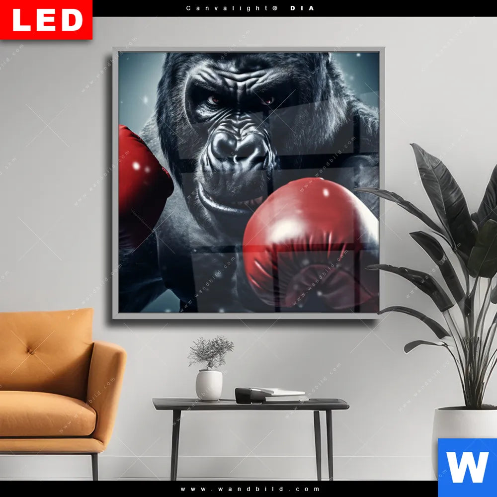 Wechselmotiv Acrylglas Canvalight® DIA | Gorilla mit roten Boxhandschuhen | Quadrat