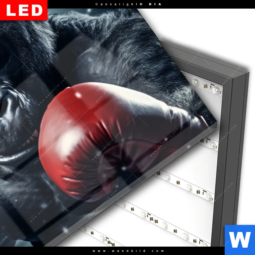 Wechselmotiv Acrylglas Canvalight® DIA | Gorilla mit roten Boxhandschuhen | Querformat