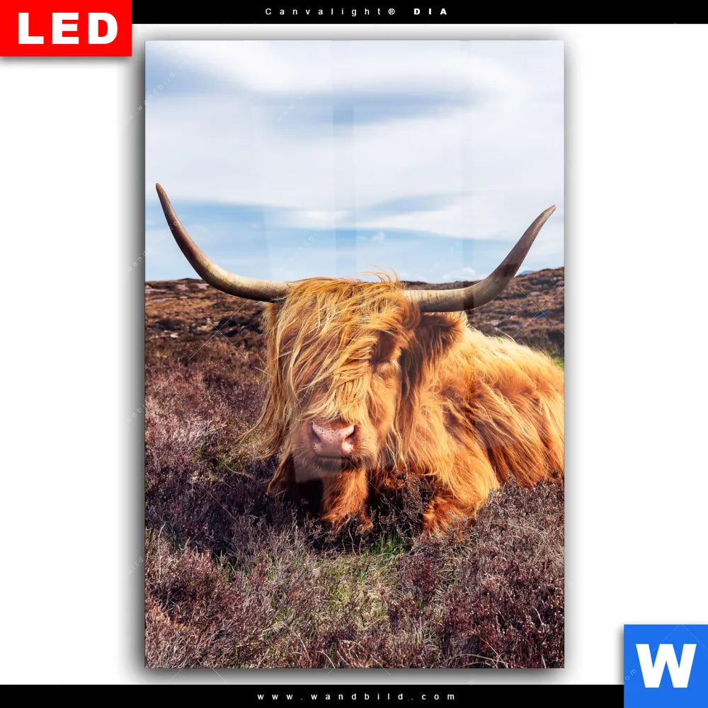 Wechselmotiv Acrylglas Canvalight® DIA | Grasendes Hochlandrind | Hochformat
