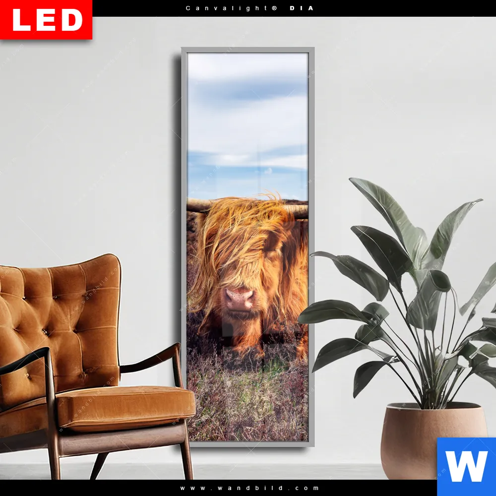 Wechselmotiv Acrylglas Canvalight® DIA | Grasendes Hochlandrind | Schmal