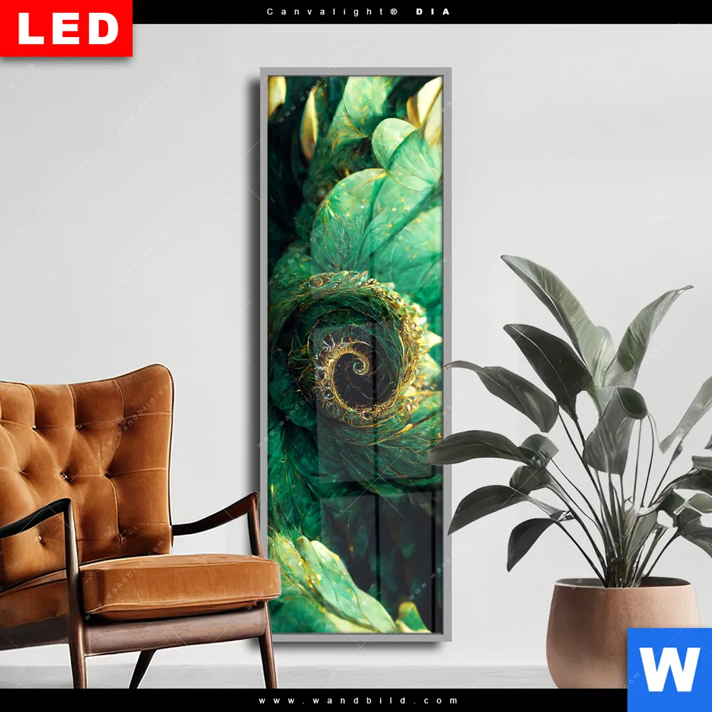 Wechselmotiv Acrylglas Canvalight® DIA | Grüne Spiralblätter | Schmal