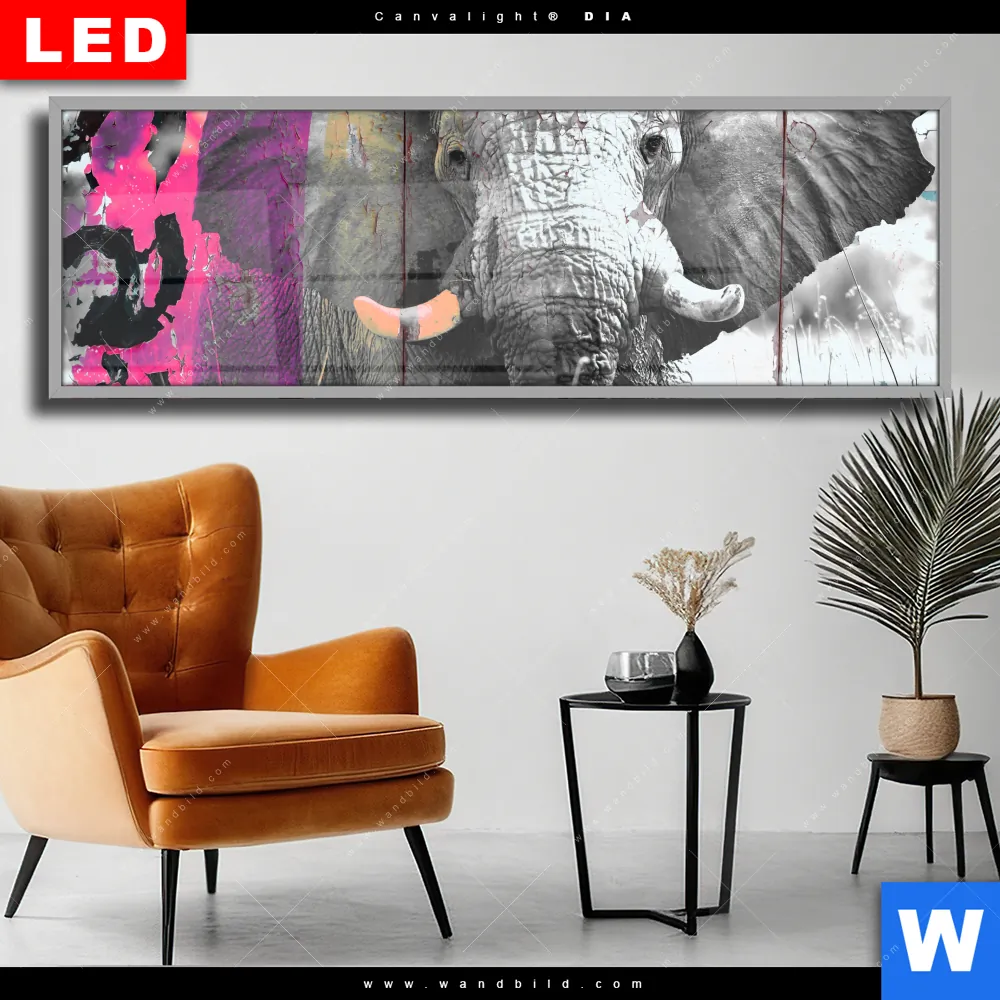 Wechselmotiv Acrylglas Canvalight® DIA | Grunge Elefant | Panorama