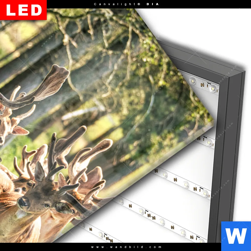 Wechselmotiv Acrylglas Canvalight® DIA | Gruppe Rotwild | Hochformat