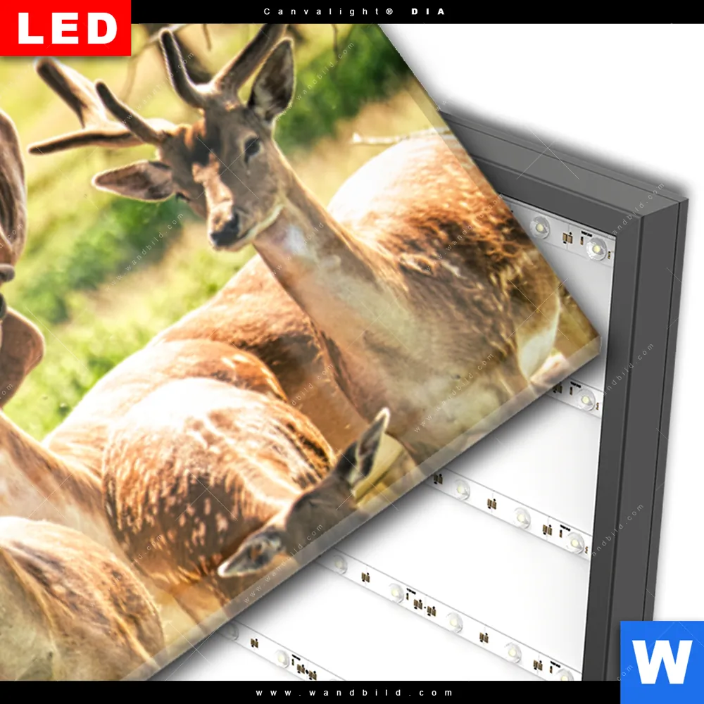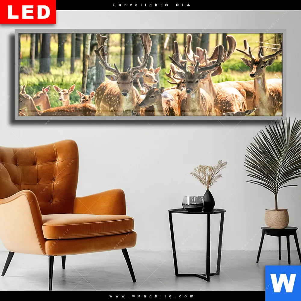 Wechselmotiv Acrylglas Canvalight® DIA | Gruppe Rotwild | Panorama