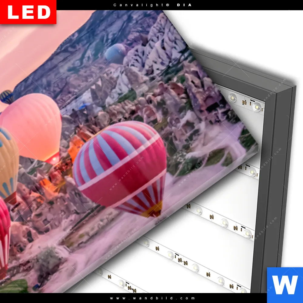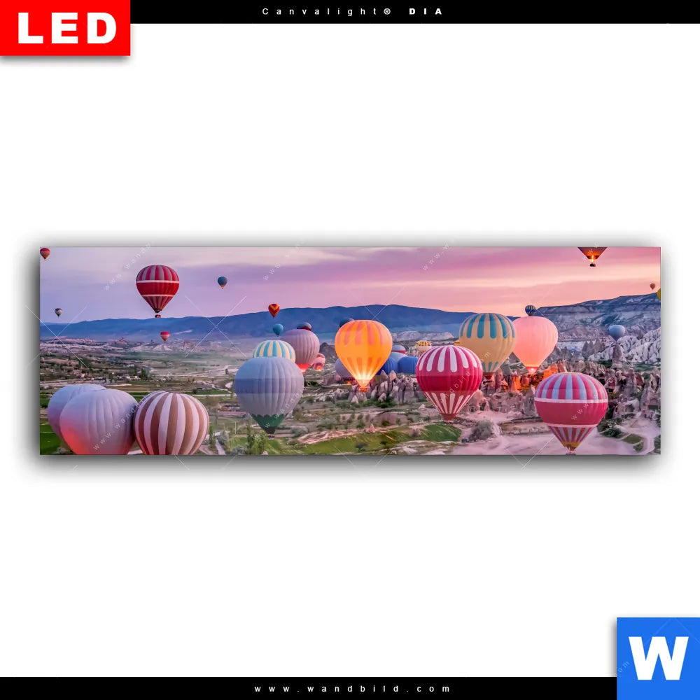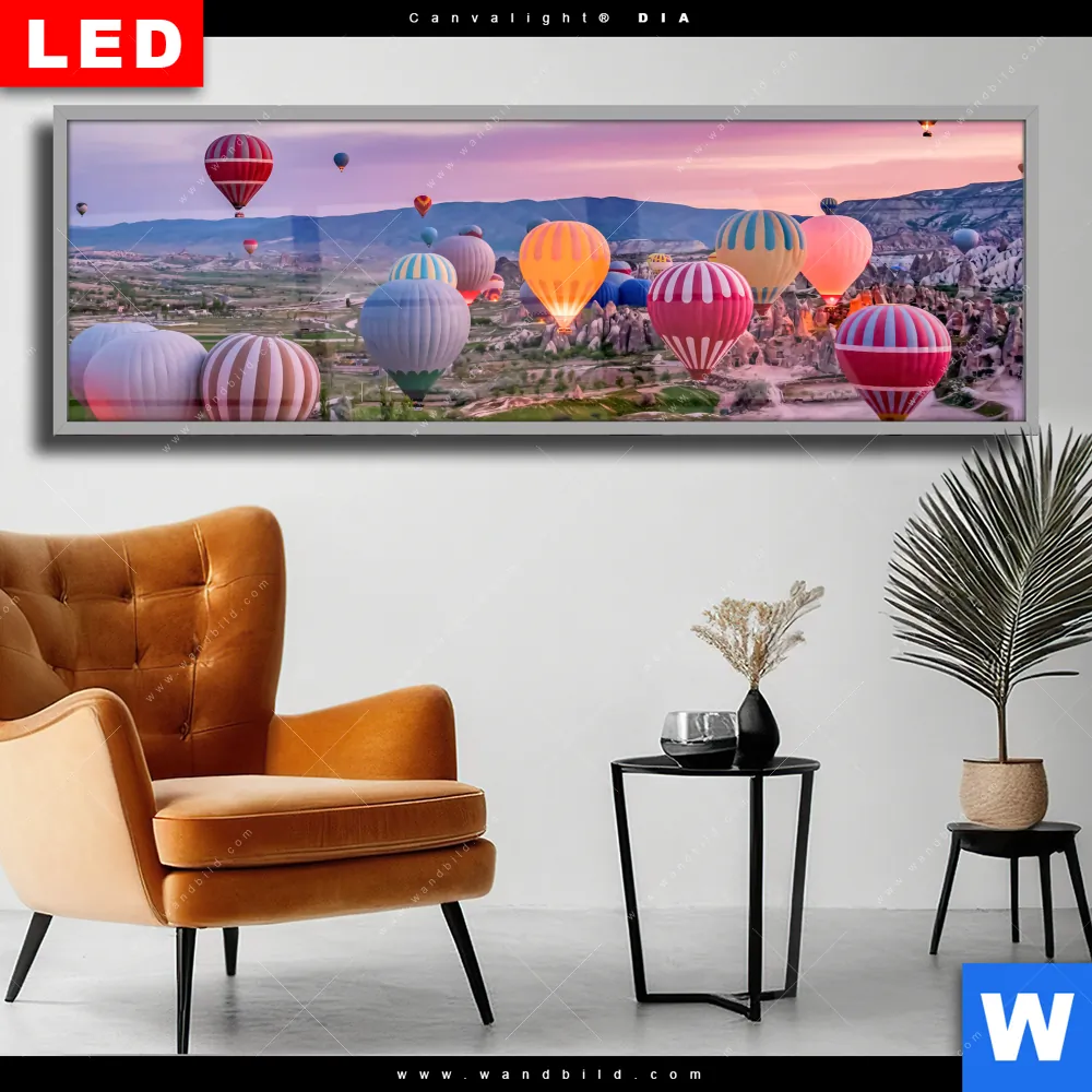 Wechselmotiv Acrylglas Canvalight® DIA | Heißluftballons im Sonnenuntergang | Panorama