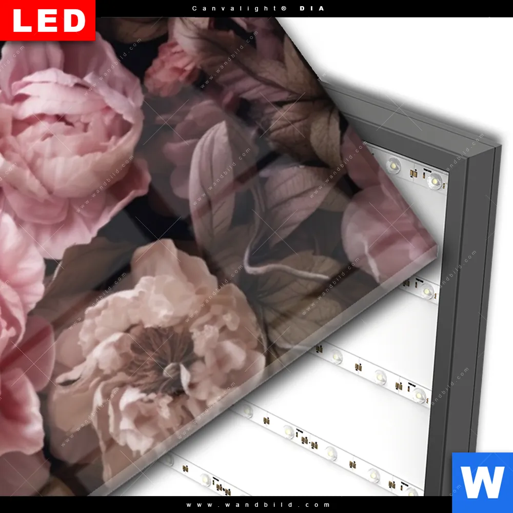 Wechselmotiv Acrylglas Canvalight® DIA | Hellrosa Blumen | Panorama