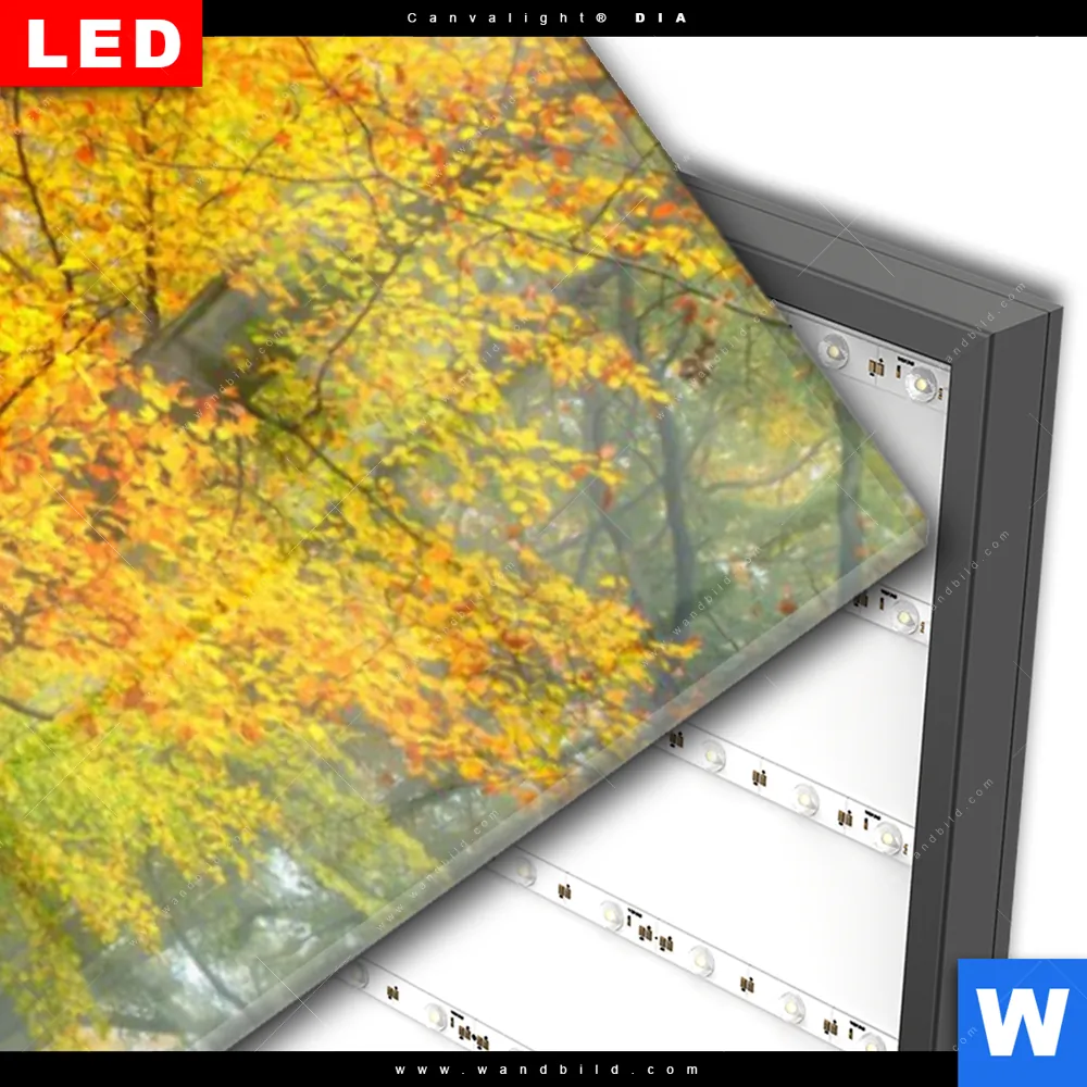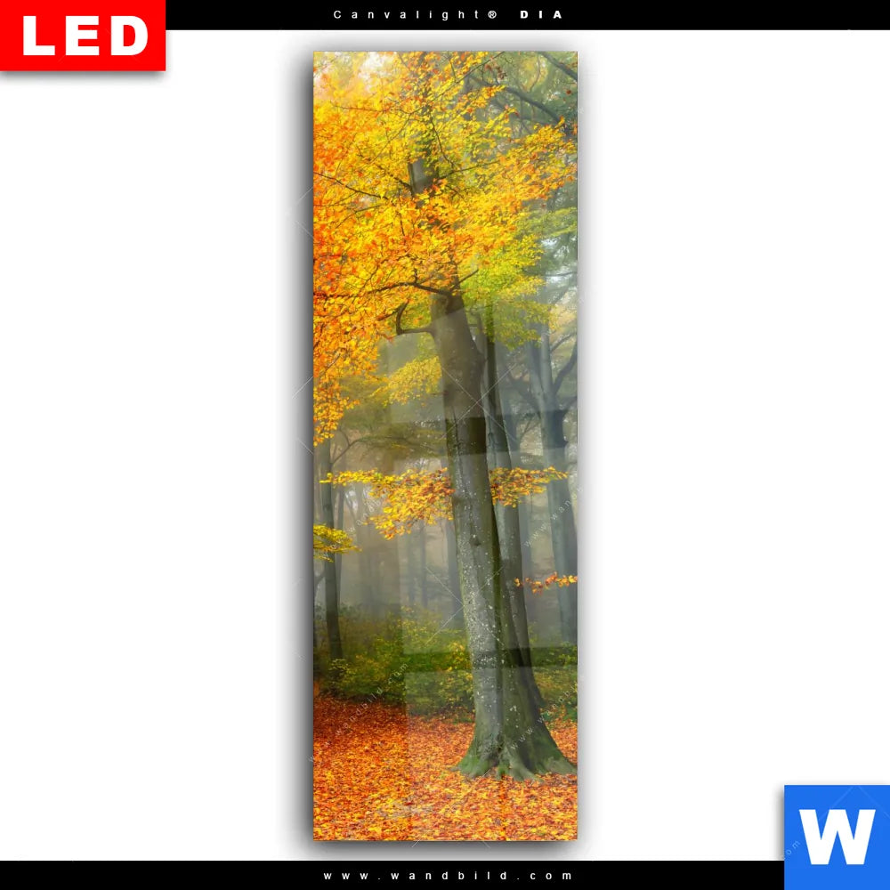 Wechselmotiv Acrylglas Canvalight® DIA | Herbstfarben im nebligen Wald | Schmal