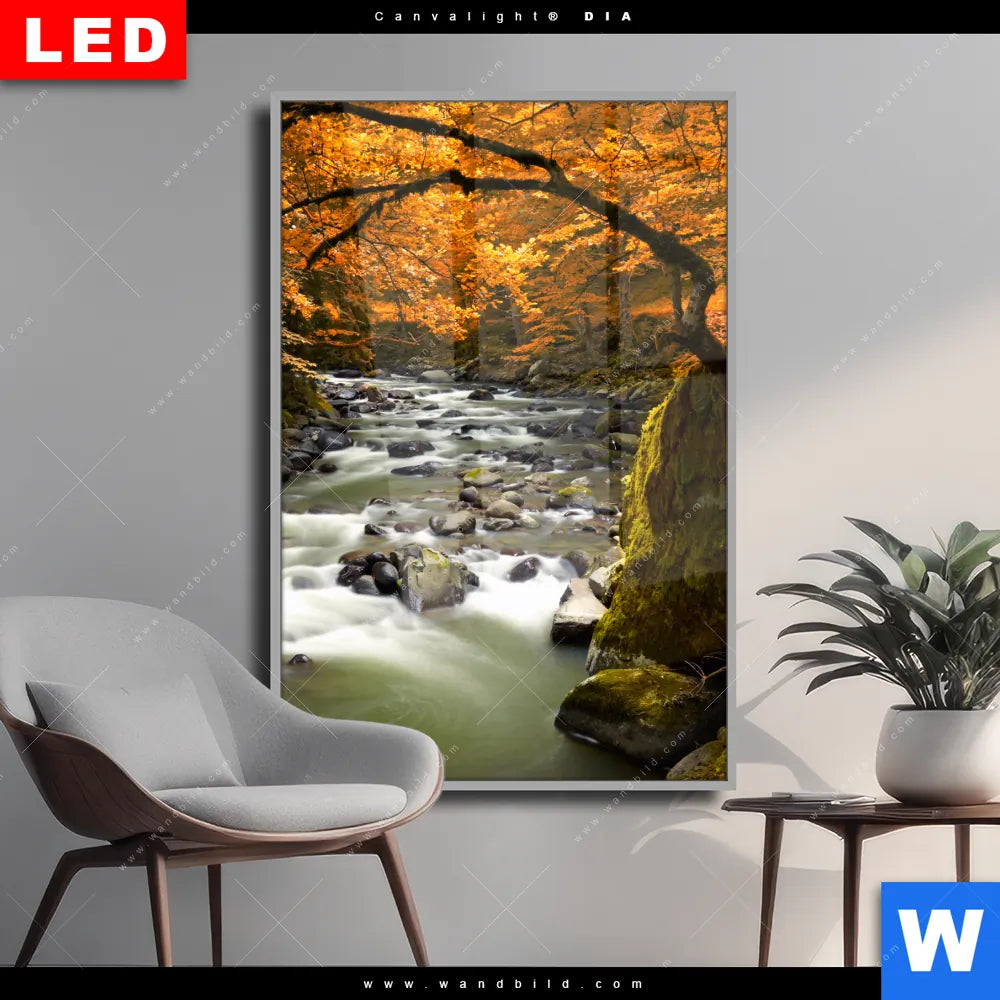 Wechselmotiv Acrylglas Canvalight® DIA | Herbstlandschaft am Fluss | Hochformat