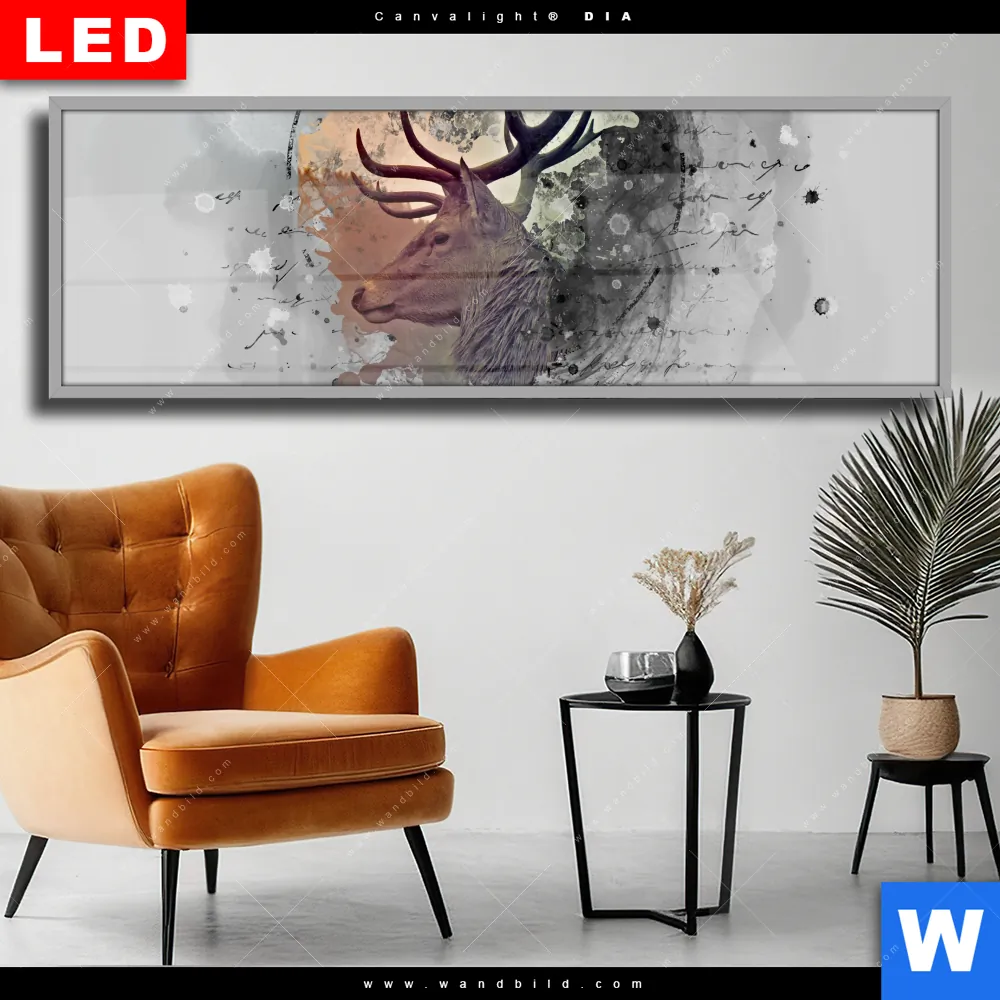 Wechselmotiv Acrylglas Canvalight® DIA | Hirsch - Grunge-Stil | Panorama