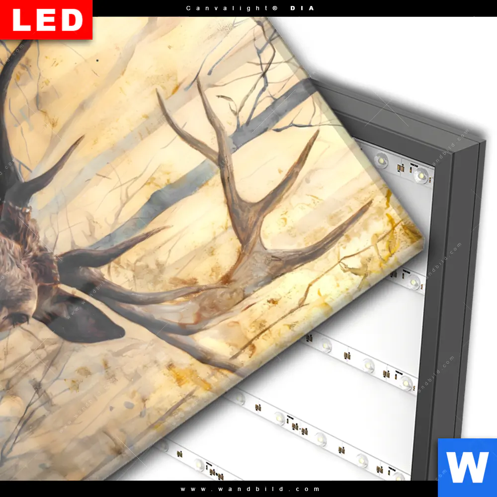Wechselmotiv Acrylglas Canvalight® DIA | Hirsch im Morgenlicht | Hochformat