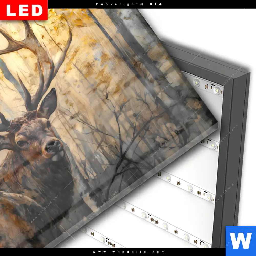 Wechselmotiv Acrylglas Canvalight® DIA | Hirsch im Morgenlicht | Querformat