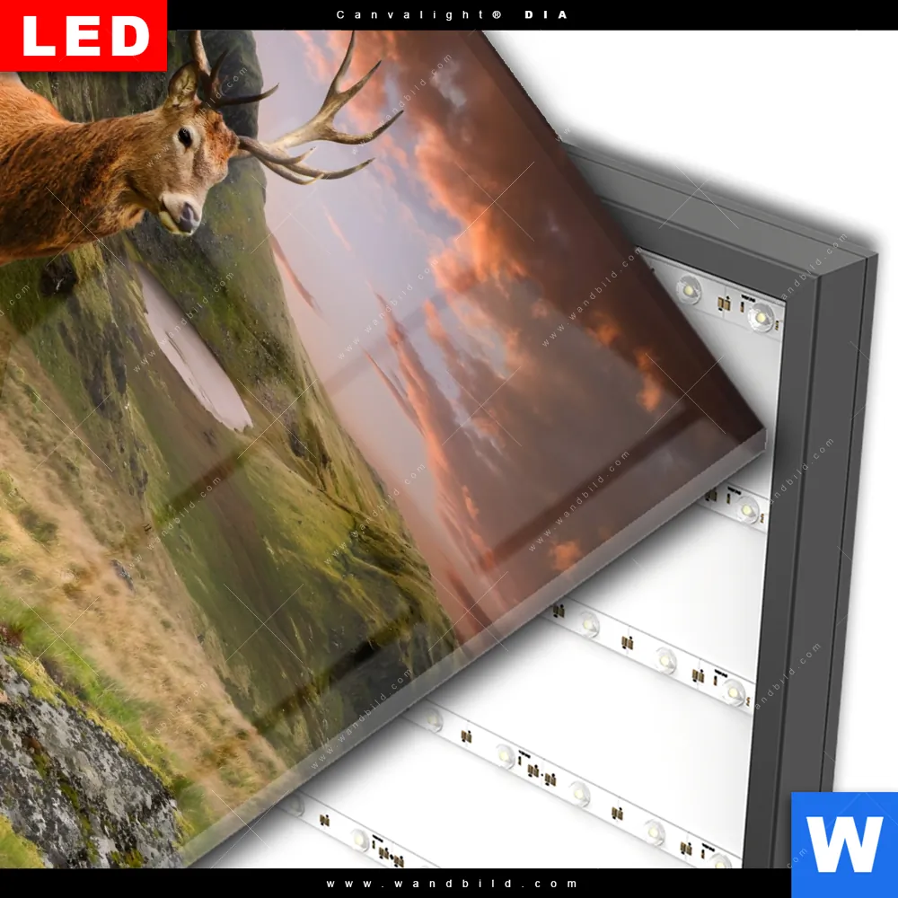 Wechselmotiv Acrylglas Canvalight® DIA | Hirsch in Gebirgslandschaft | Quadrat