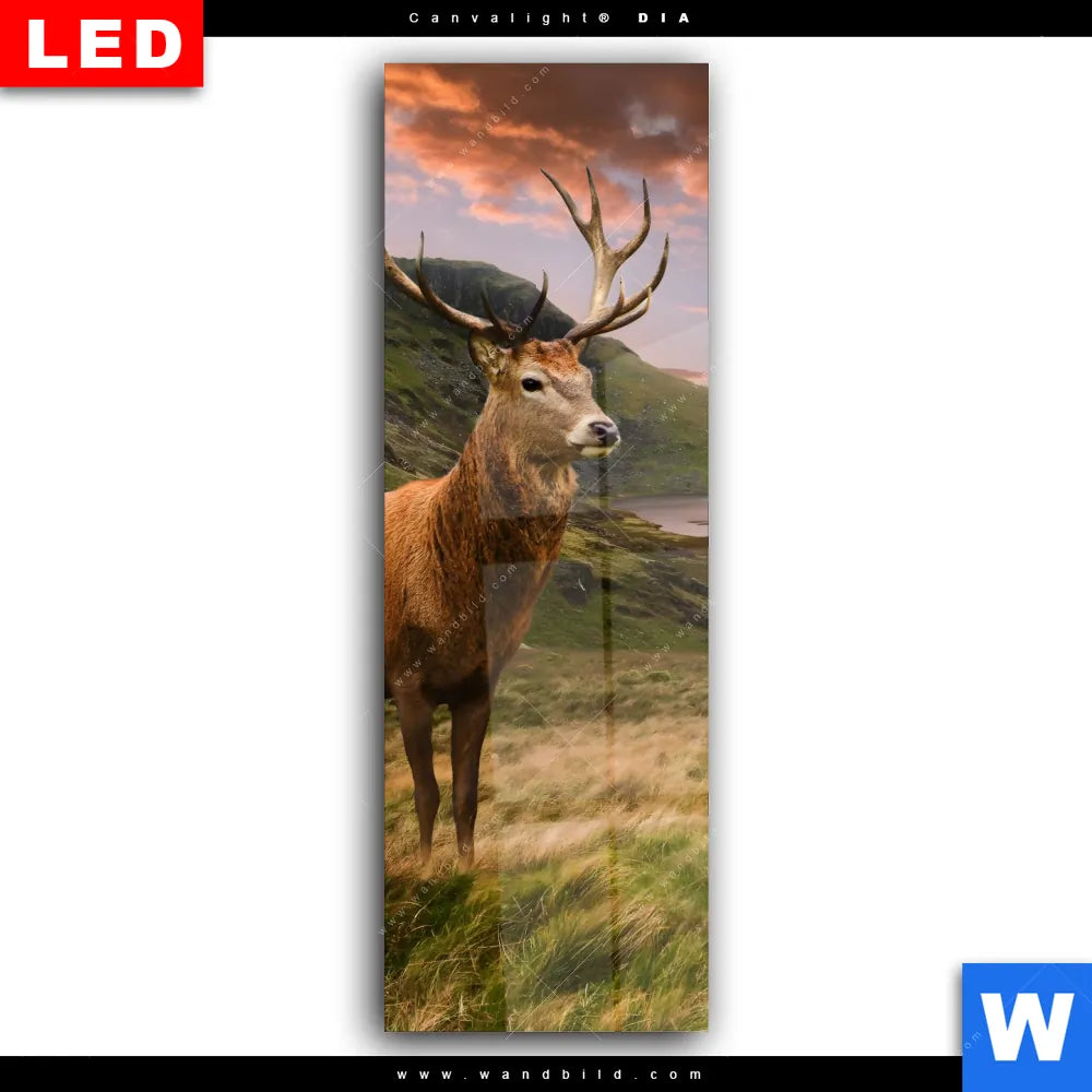 Wechselmotiv Acrylglas Canvalight® DIA | Hirsch in Gebirgslandschaft | Schmal