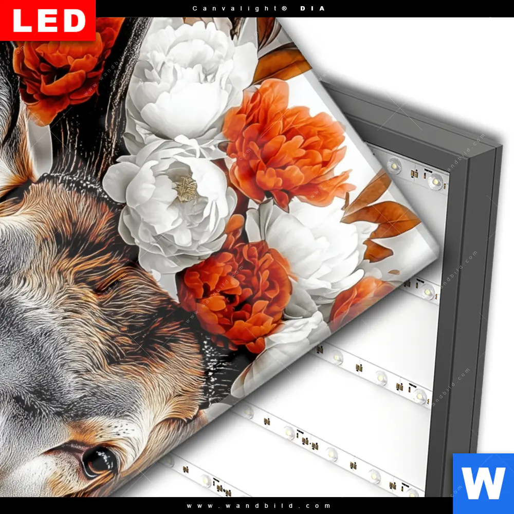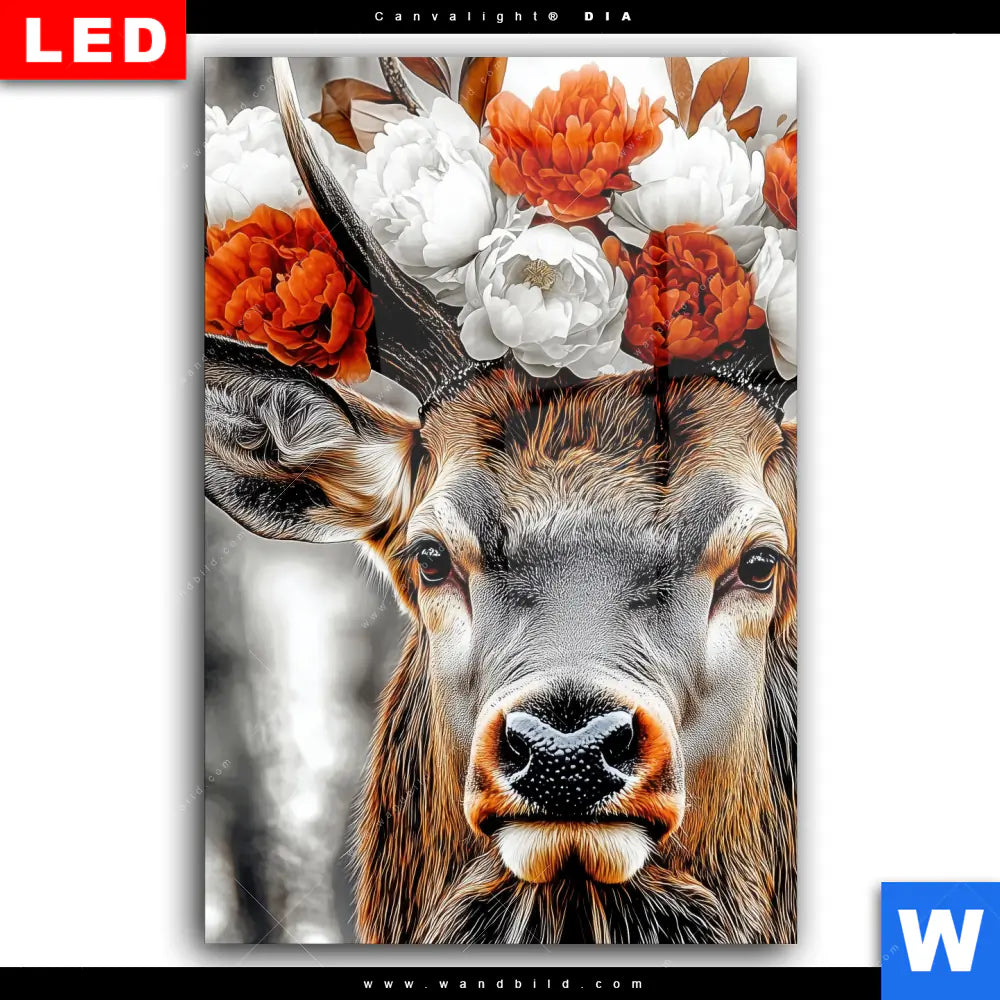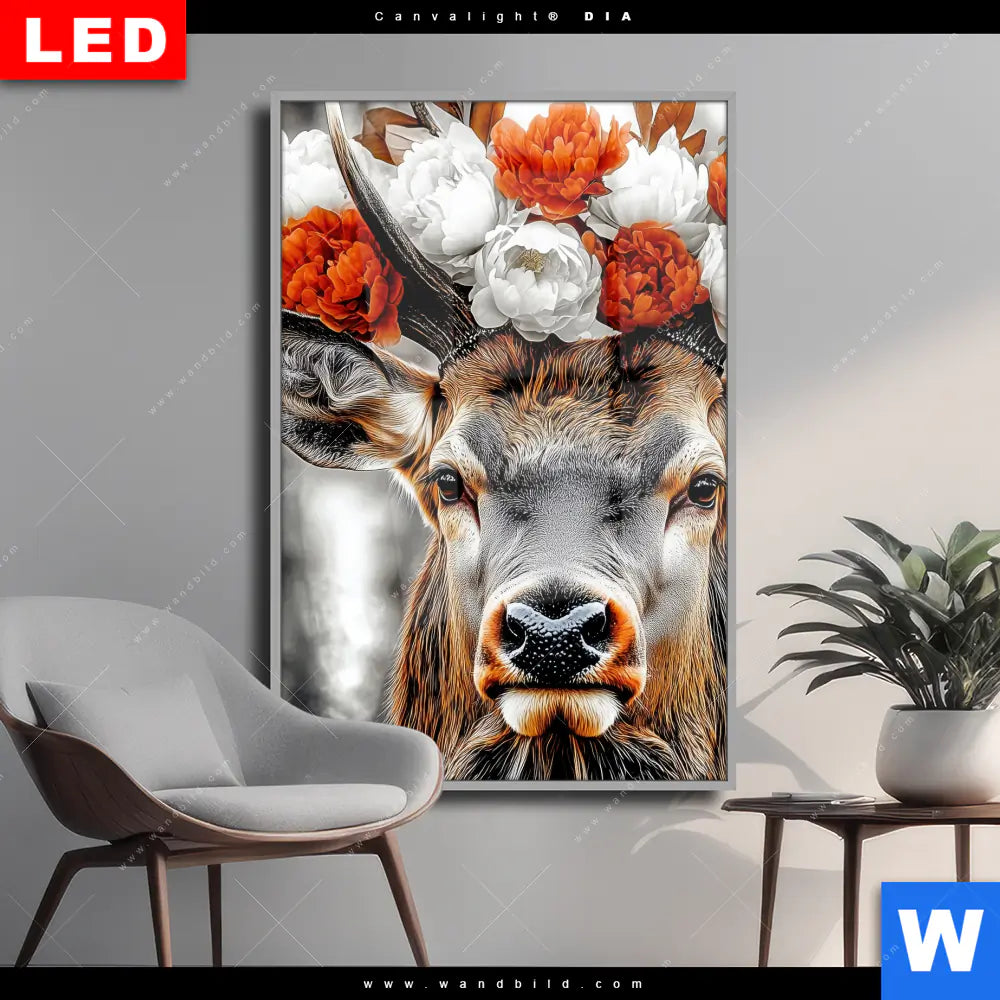 Wechselmotiv Acrylglas Canvalight® DIA | Hirsch mit Blumenkrone | Hochformat