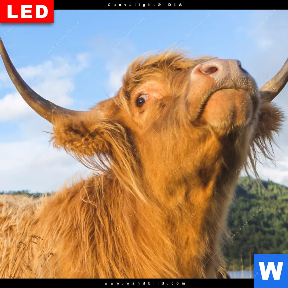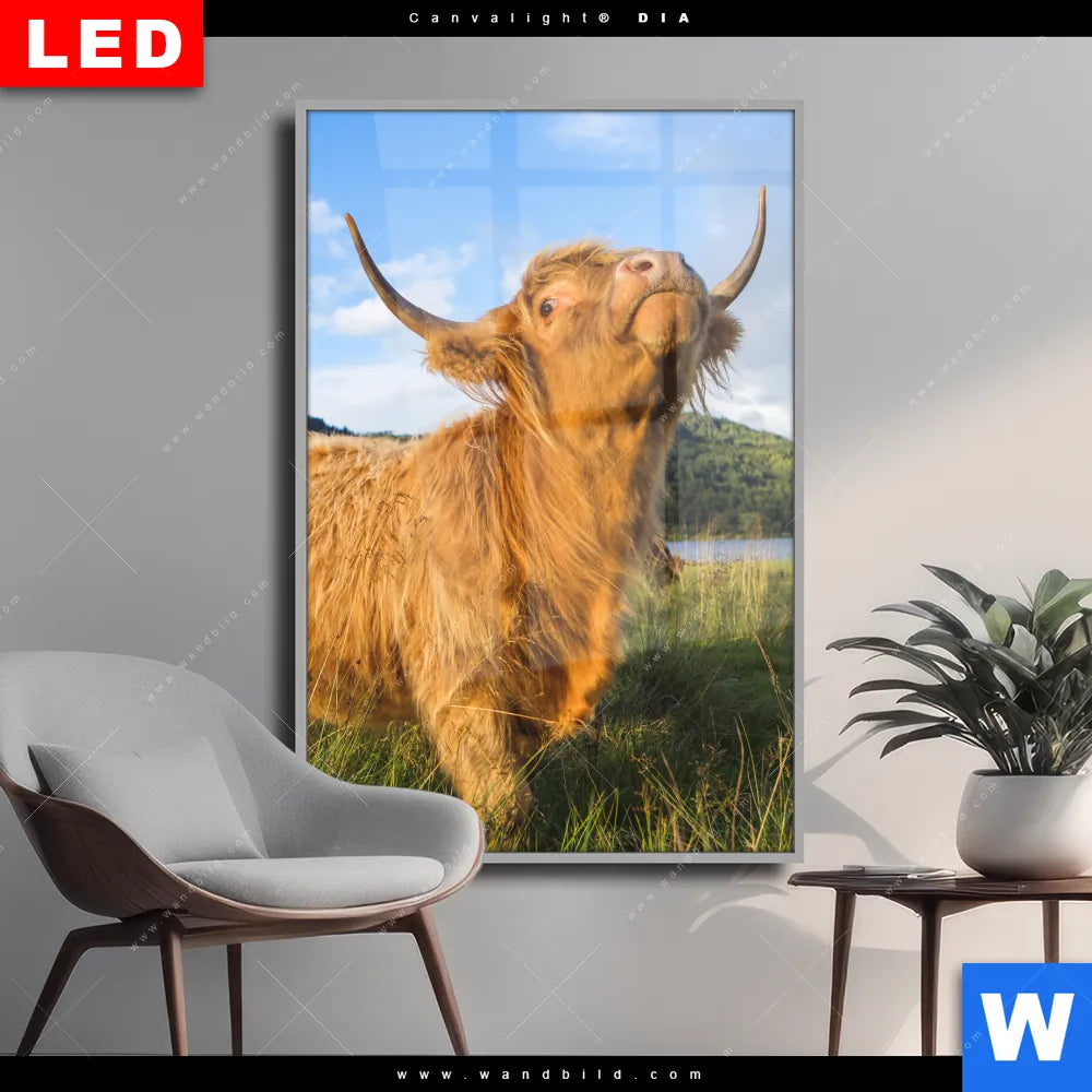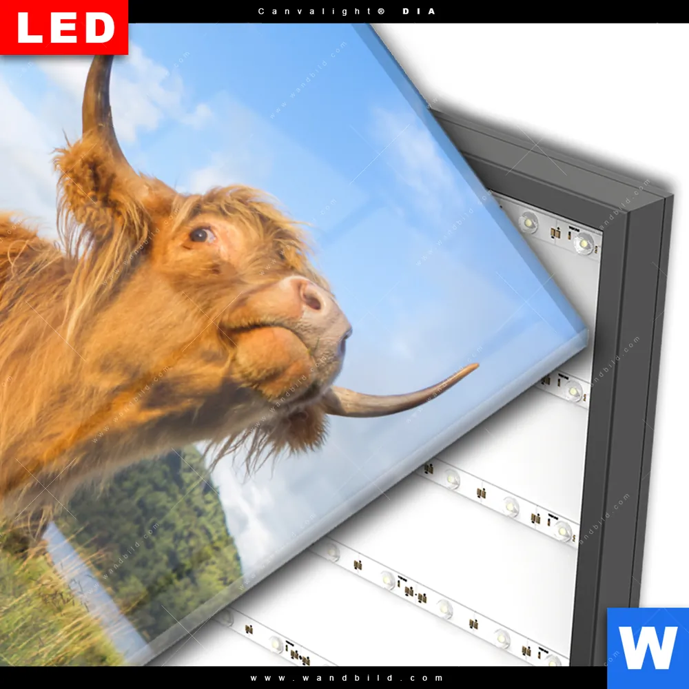 Wechselmotiv Acrylglas Canvalight® DIA | Hochland-Bulle | Hochformat