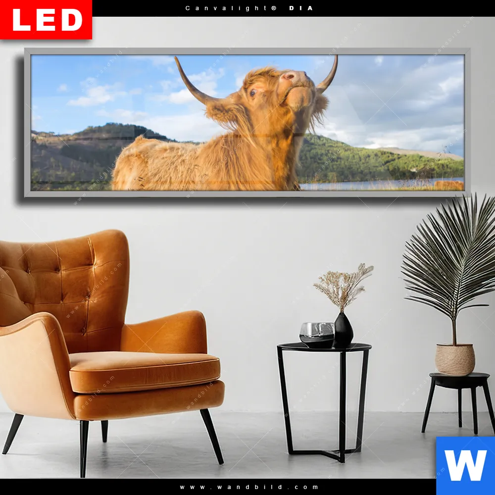 Wechselmotiv Acrylglas Canvalight® DIA | Hochland-Bulle | Panorama