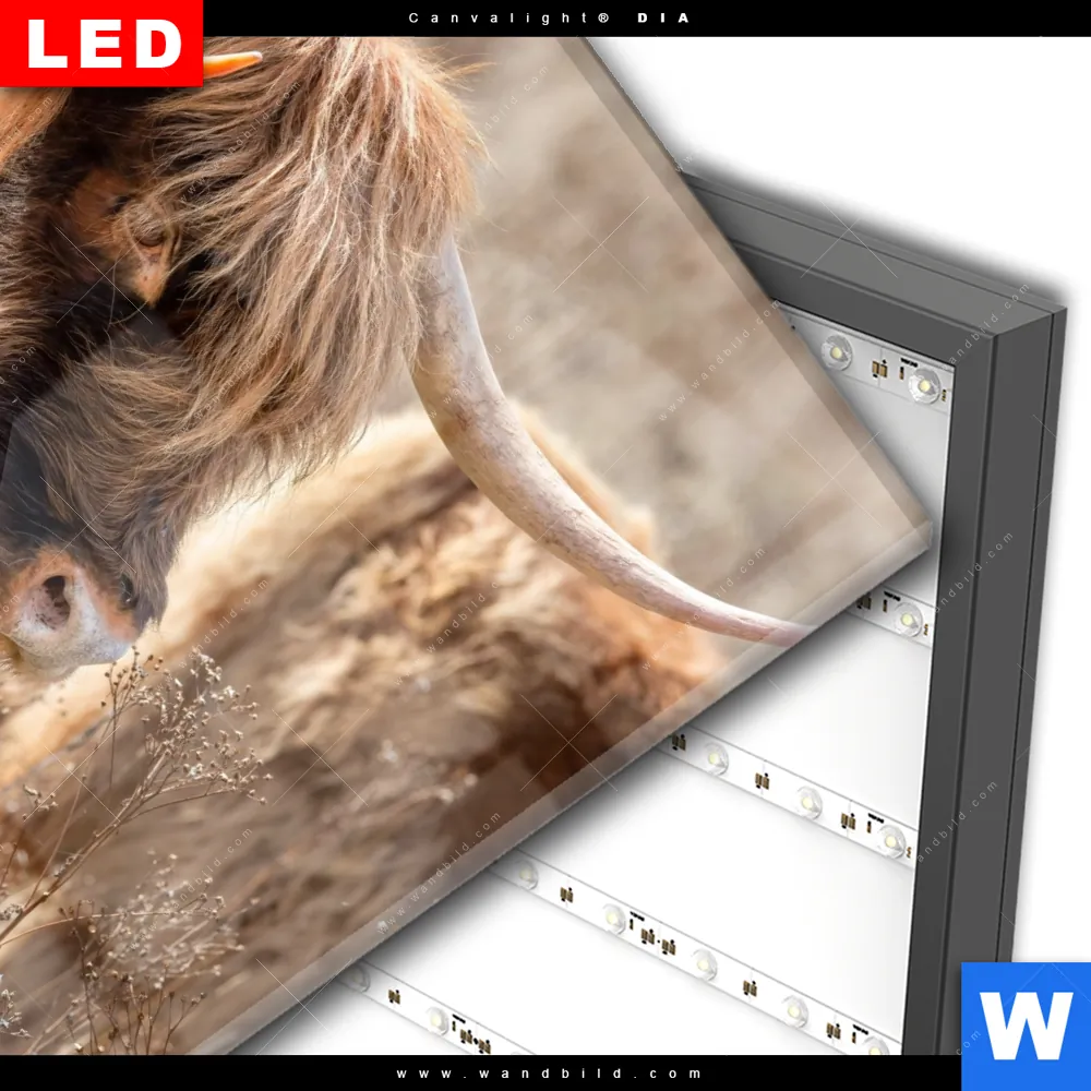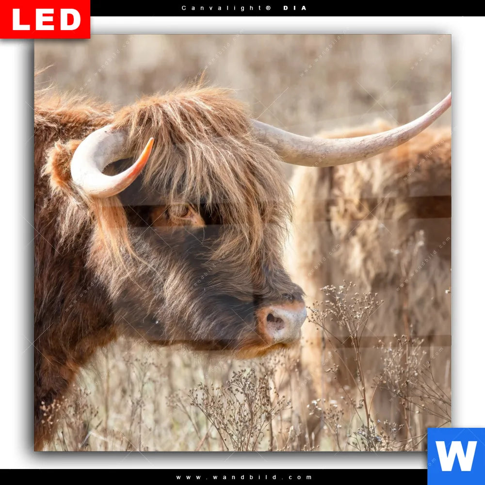 Wechselmotiv Acrylglas Canvalight® DIA | Hochlandrind auf Weide | Quadrat
