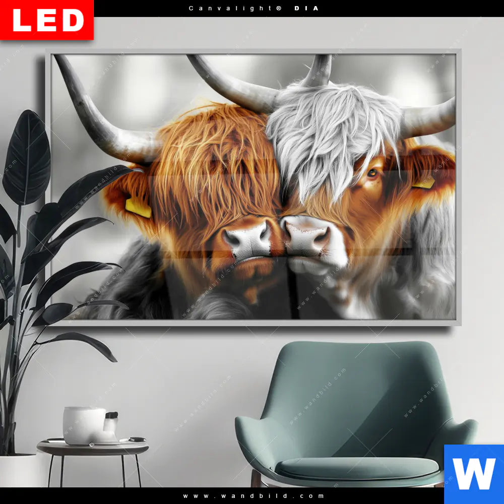 Wechselmotiv Acrylglas Canvalight® DIA | Hochlandrinder - Harmonie der Natur | Querformat