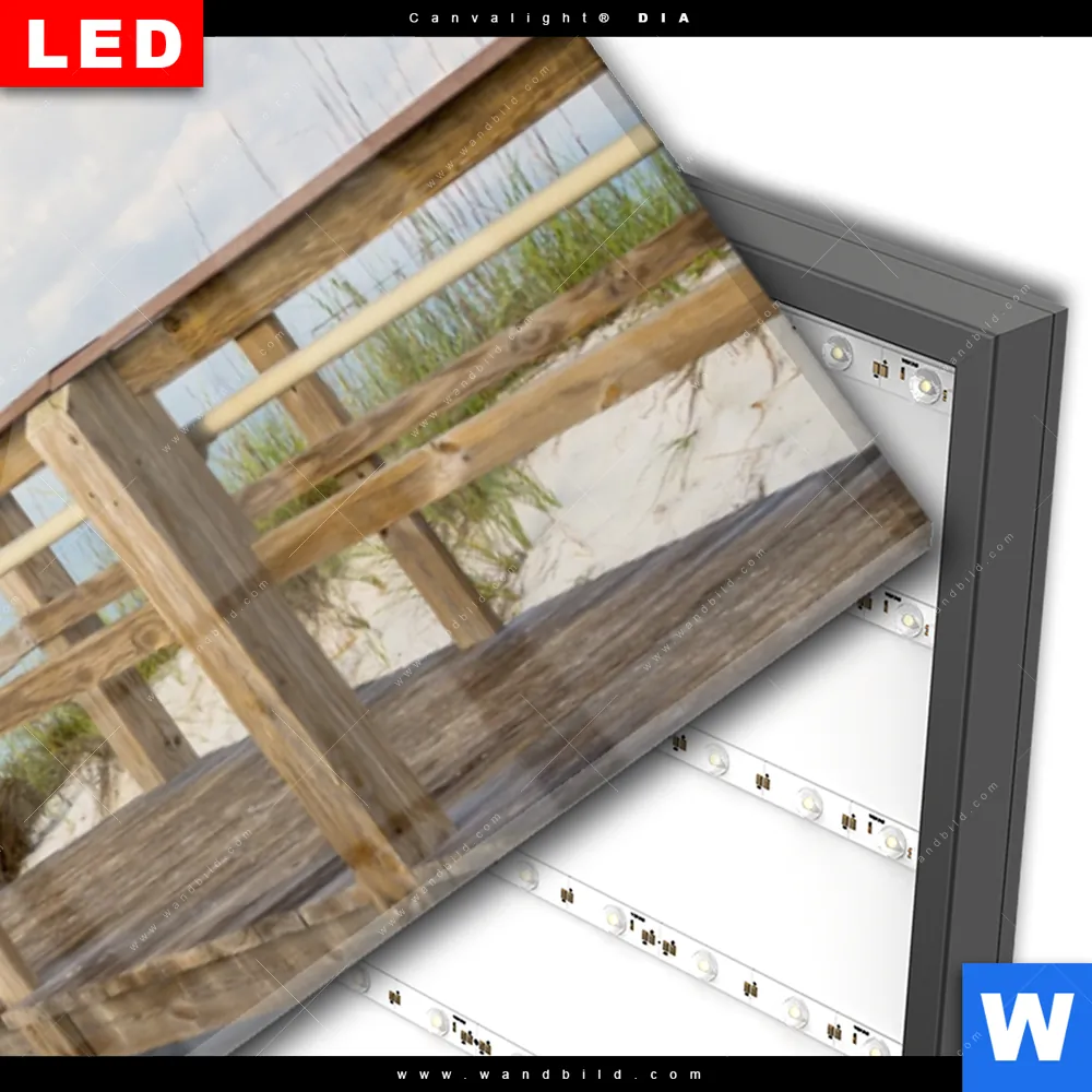 Wechselmotiv Acrylglas Canvalight® DIA | Holzsteg & Dünen | Panorama