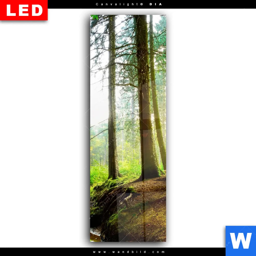 Wechselmotiv Acrylglas Canvalight® DIA | Idyllischer Wald bei Sonnenaufgang | Schmal