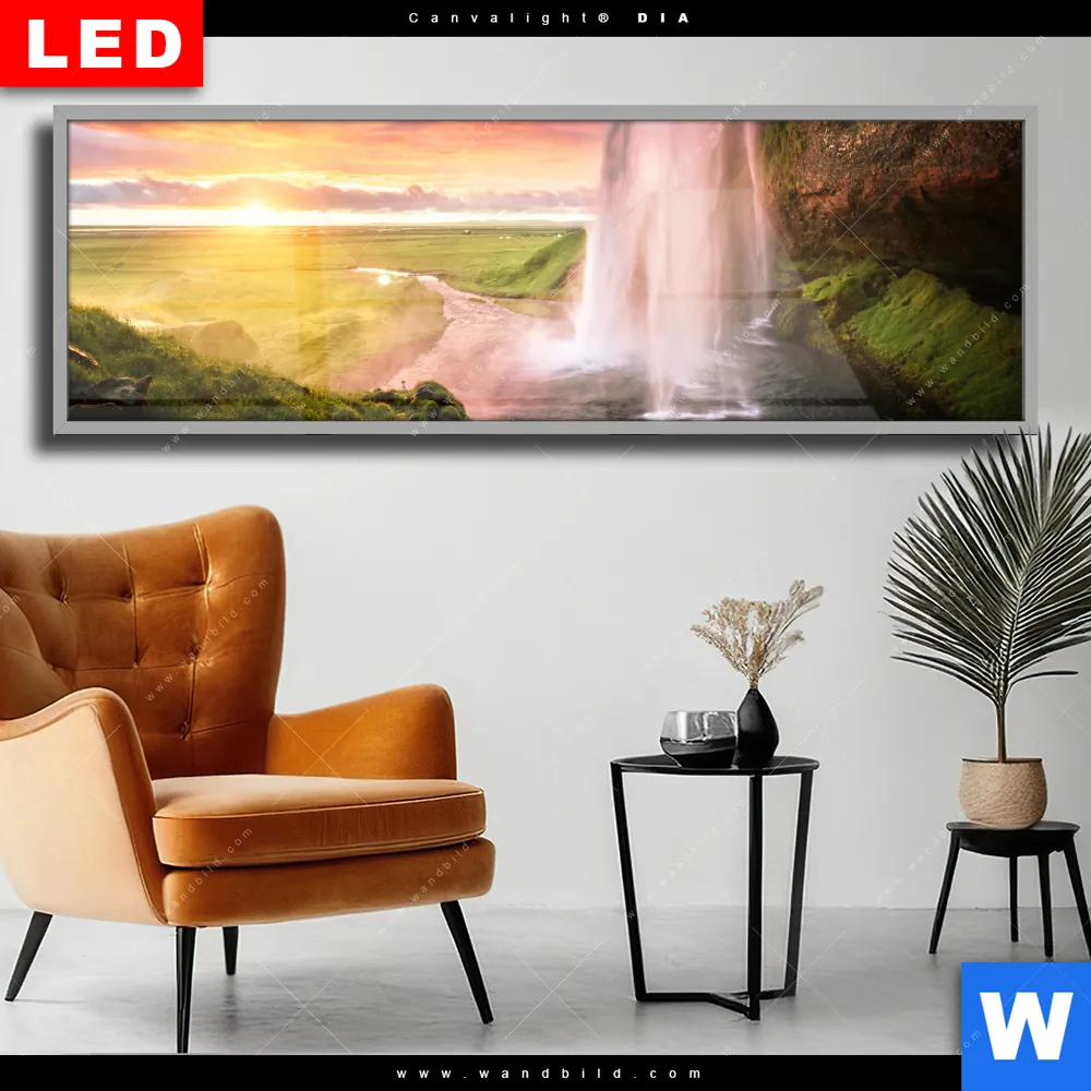 Wechselmotiv Acrylglas Canvalight® DIA | Isländischer Wasserfall | Panorama