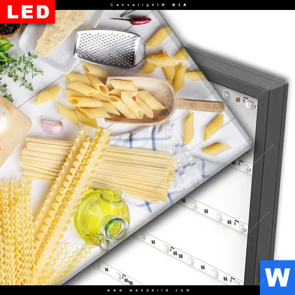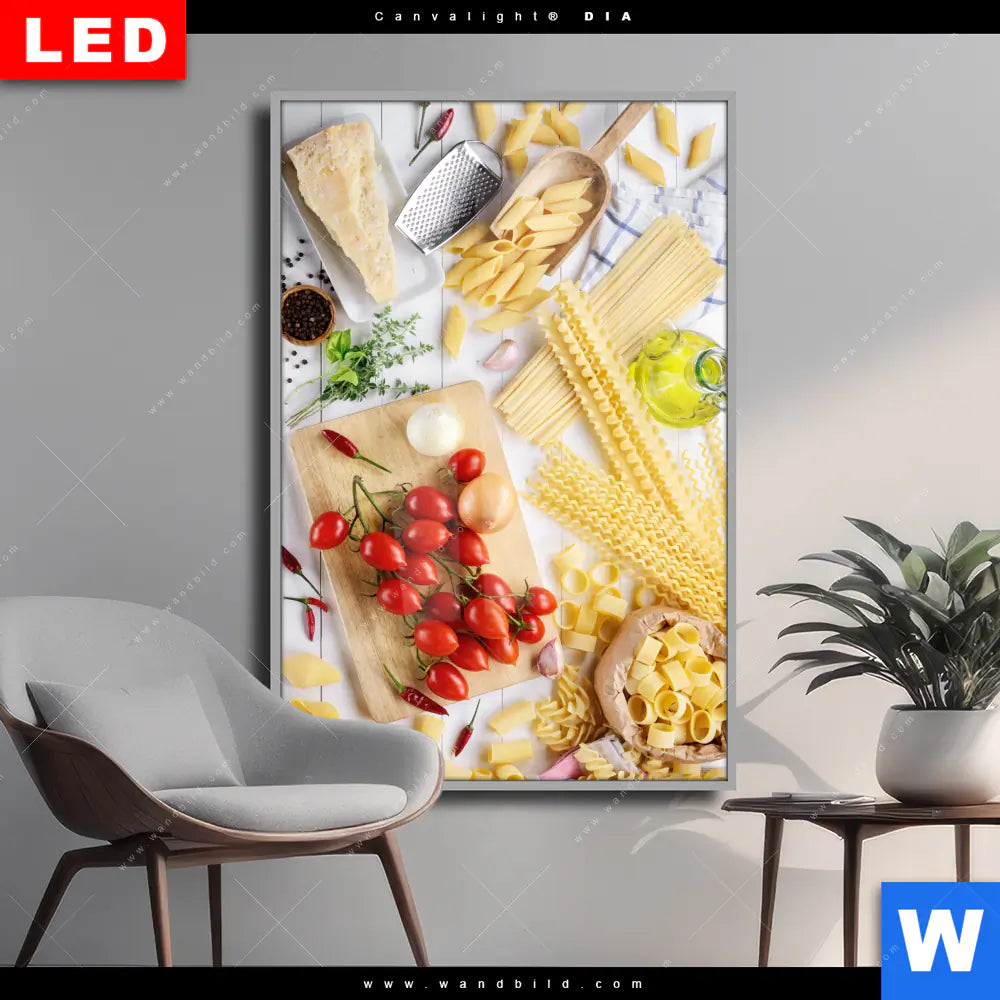Wechselmotiv Acrylglas Canvalight® DIA | Italienische Pasta Vielfalt | Hochformat