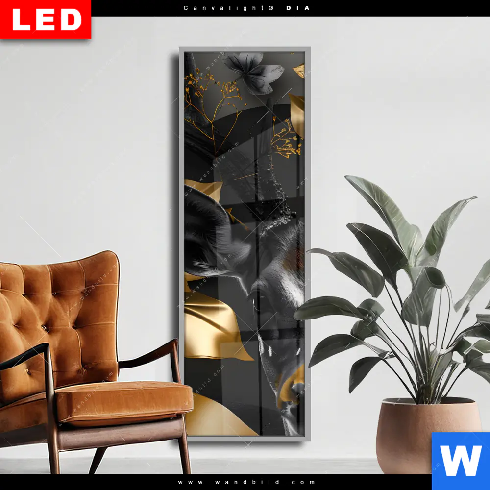 Wechselmotiv Acrylglas Canvalight® DIA | Junger Hirsch und Goldblumen | Schmal
