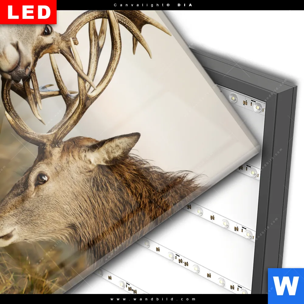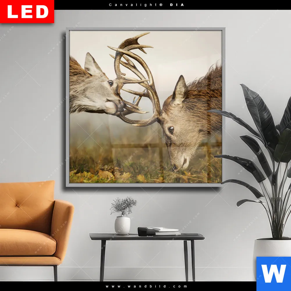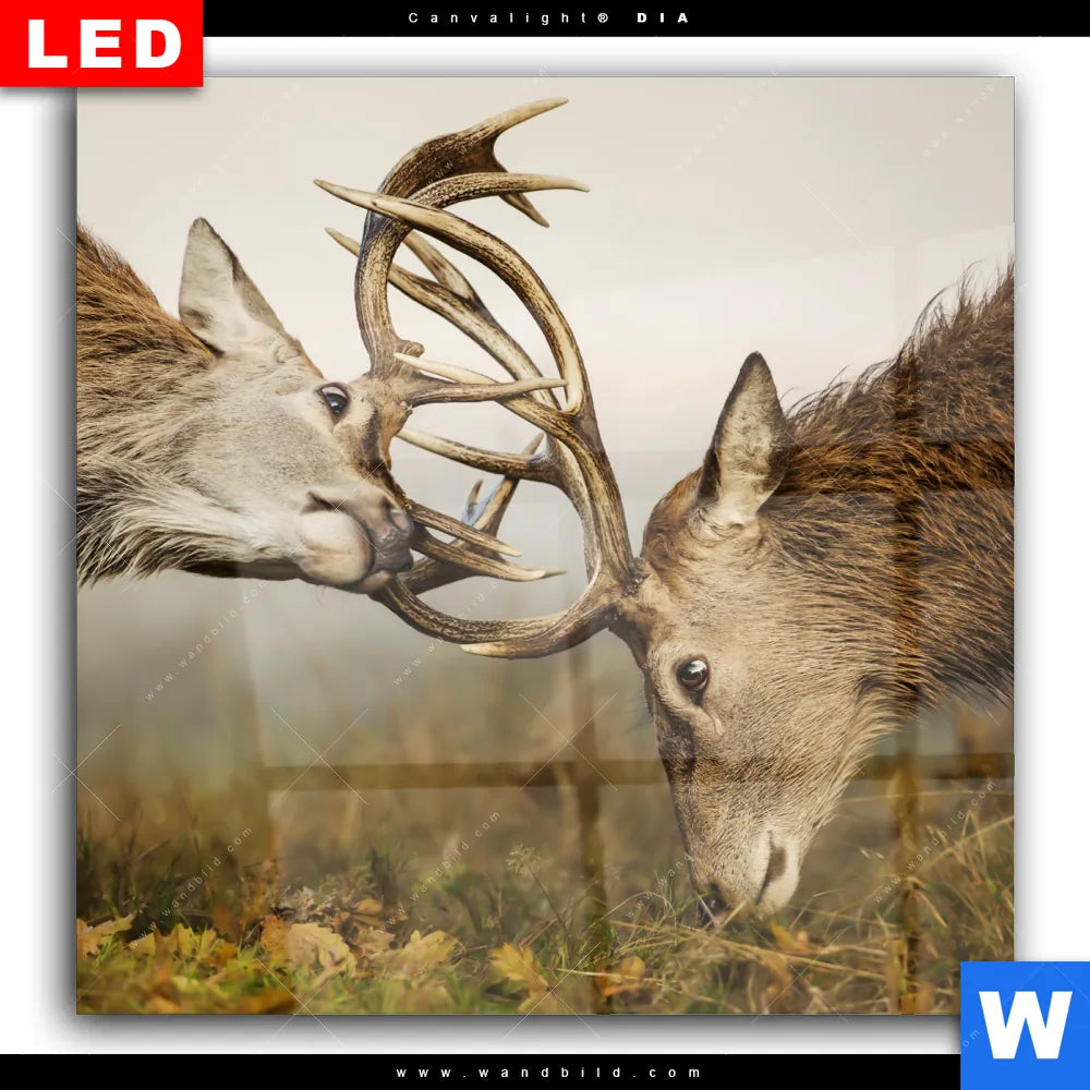 Wechselmotiv Acrylglas Canvalight® DIA | Kämpfende Hirsche | Quadrat
