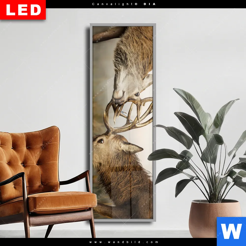 Wechselmotiv Acrylglas Canvalight® DIA | Kämpfende Hirsche | Schmal
