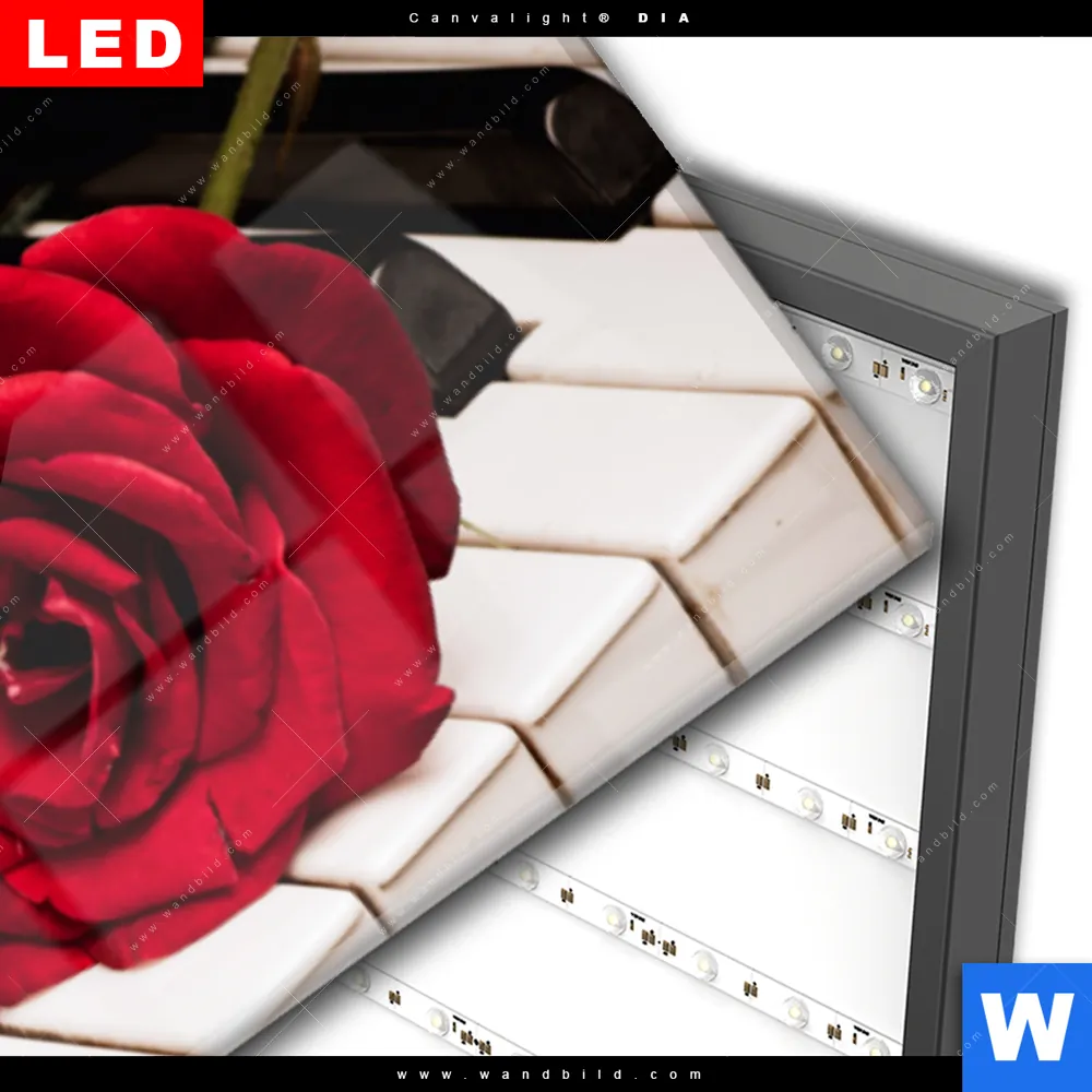 Wechselmotiv Acrylglas Canvalight® DIA | Klavier & Rose | Panorama