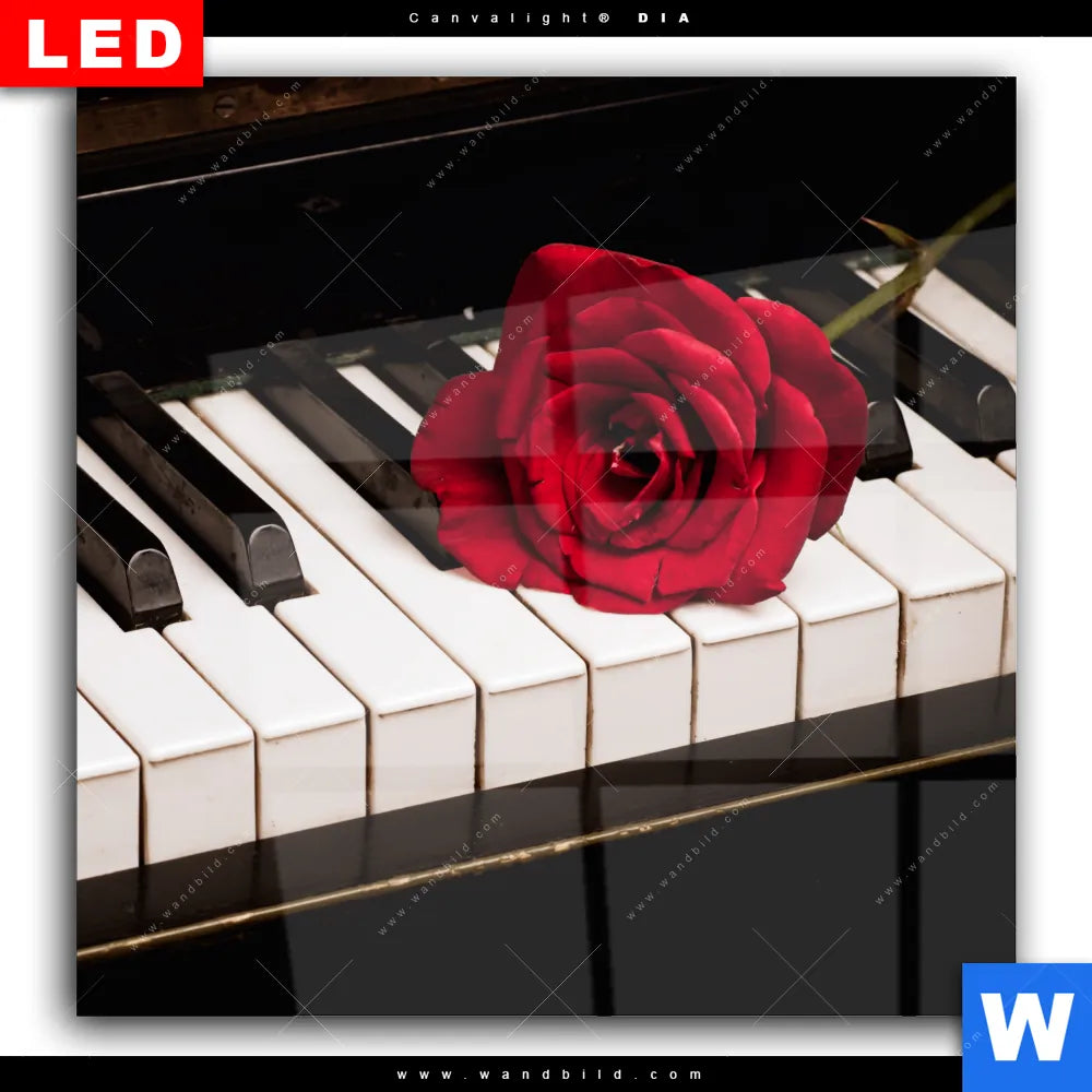 Wechselmotiv Acrylglas Canvalight® DIA | Klavier & Rose | Quadrat