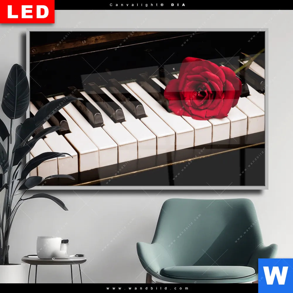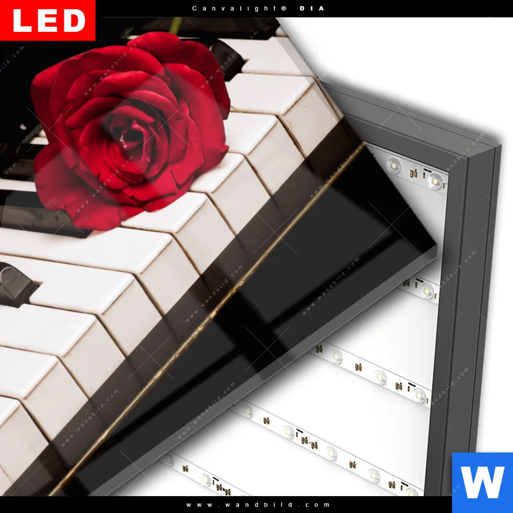 Wechselmotiv Acrylglas Canvalight® DIA | Klavier & Rose | Querformat