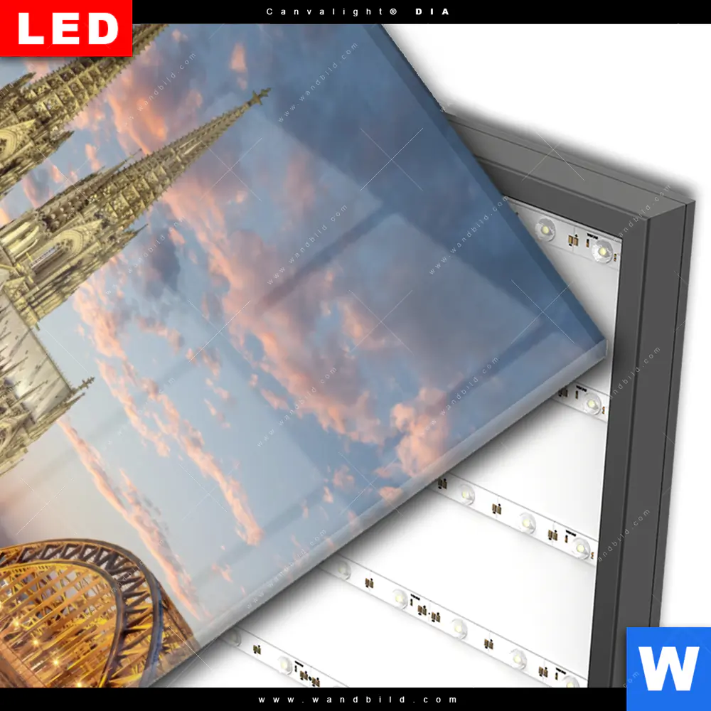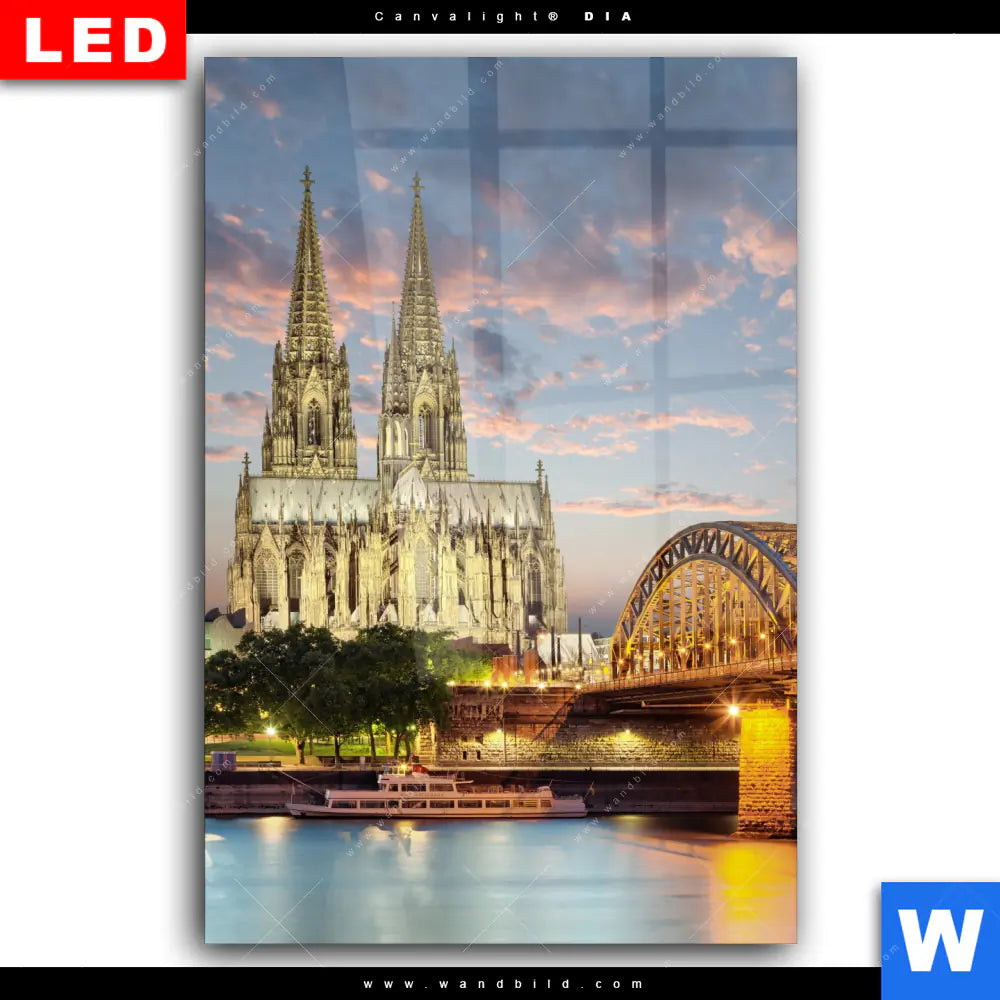 Wechselmotiv Acrylglas Canvalight® DIA | Kölner Dom bei Nacht | Hochformat