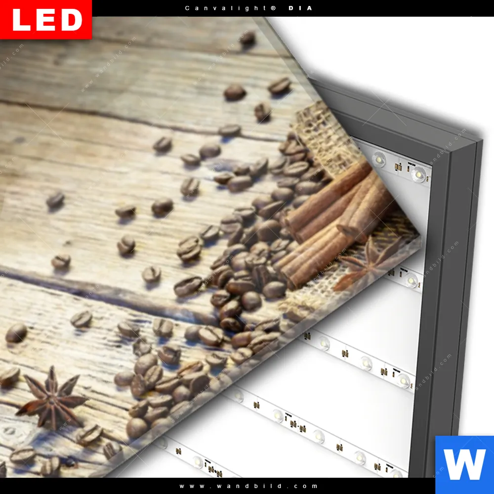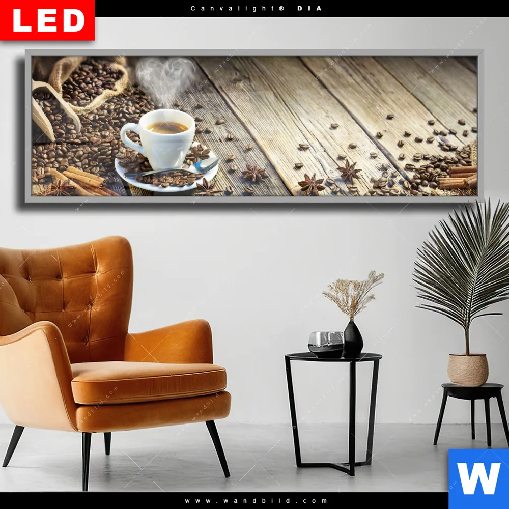 Wechselmotiv Acrylglas Canvalight® DIA | Köstlicher Kaffee | Panorama