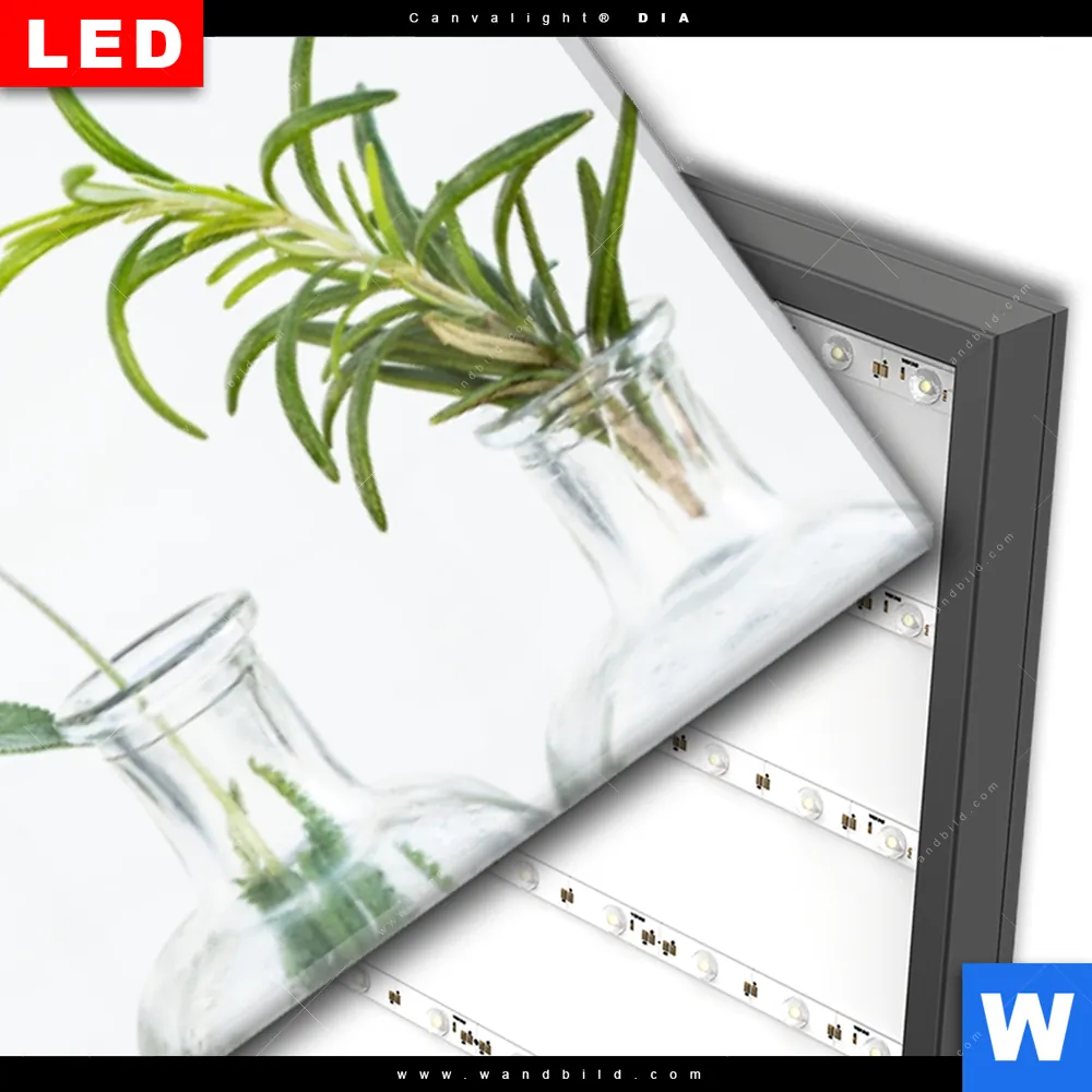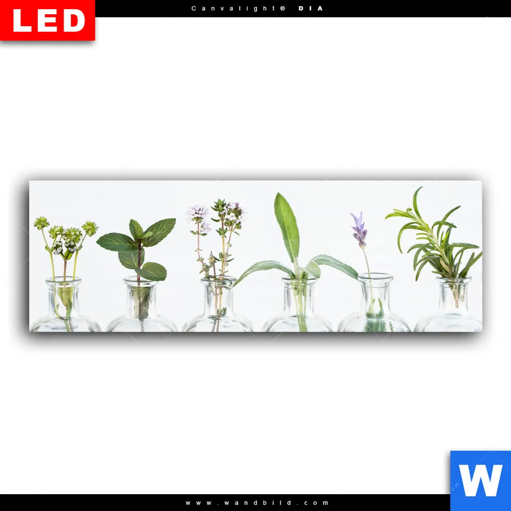 Wechselmotiv Acrylglas Canvalight® DIA | Kräuter in Flaschen | Panorama