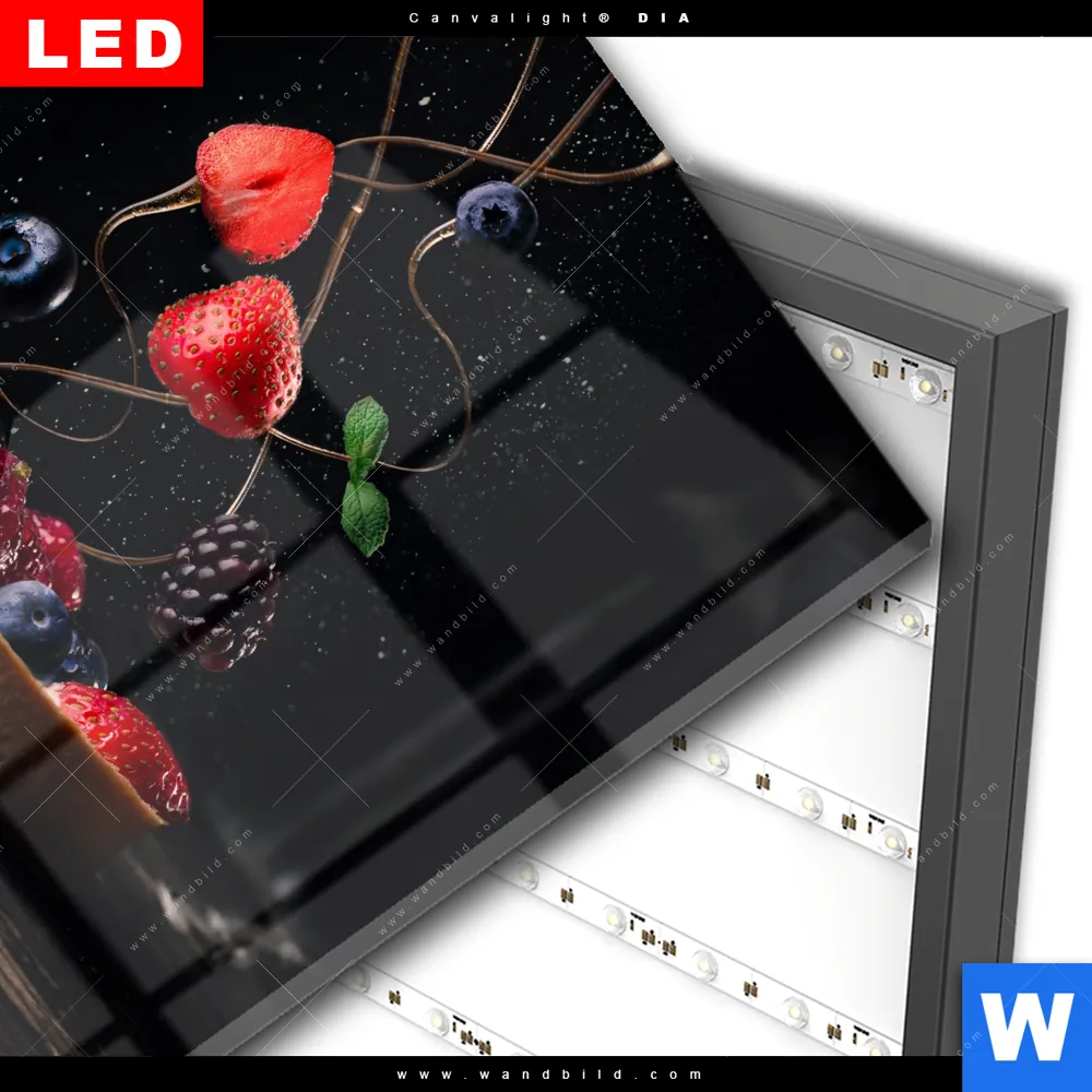 Wechselmotiv Acrylglas Canvalight® DIA | Kuchen mit frischen Beeren | Quadrat