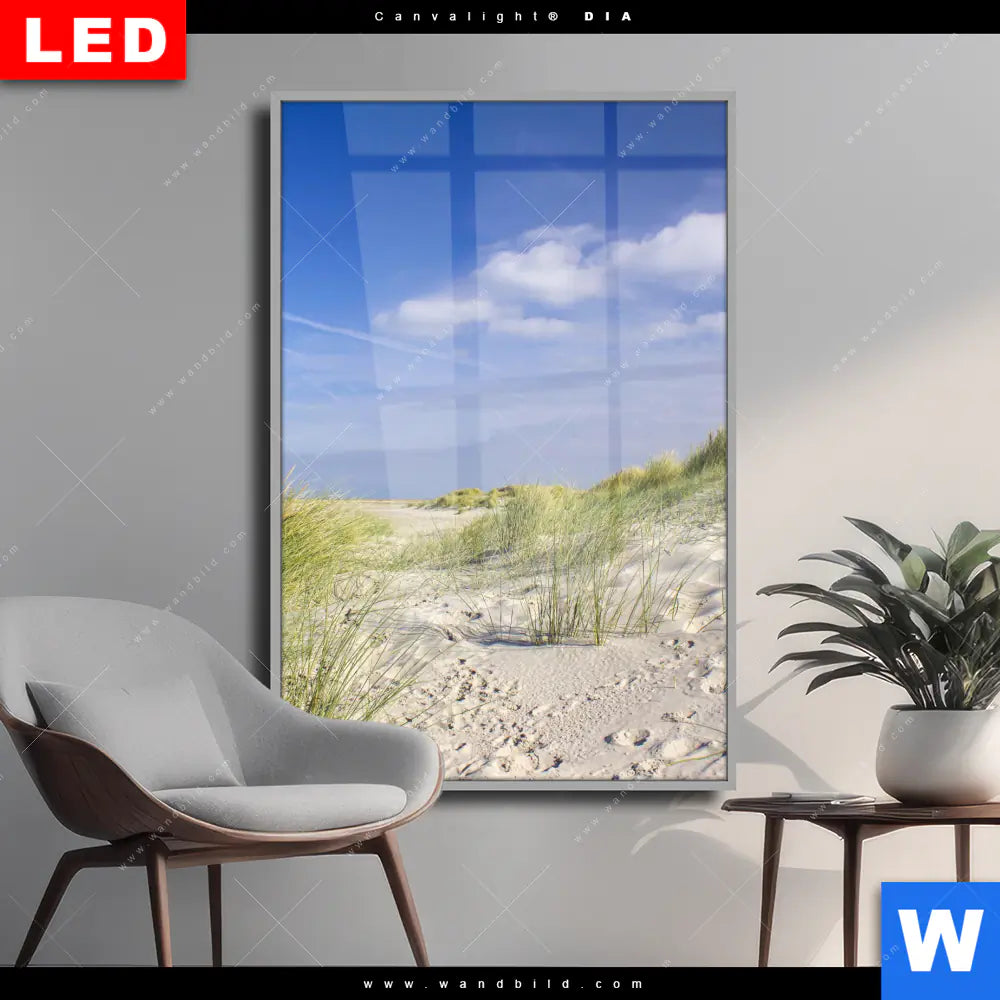 Wechselmotiv Acrylglas Canvalight® DIA | Küstenwanderung durch Sanddünen | Hochformat
