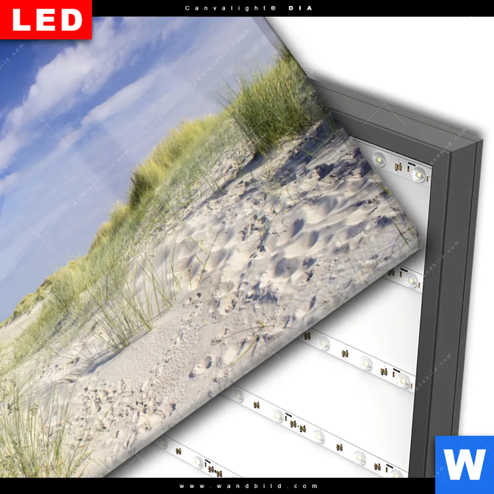 Wechselmotiv Acrylglas Canvalight® DIA | Küstenwanderung durch Sanddünen | Querformat