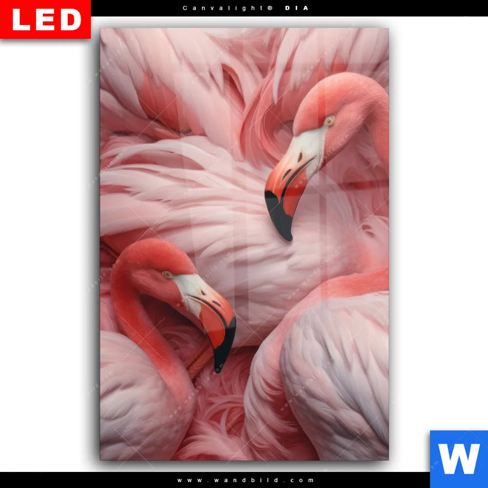 Wechselmotiv Acrylglas Canvalight® DIA | Kuschelnde Flamingos | Hochformat