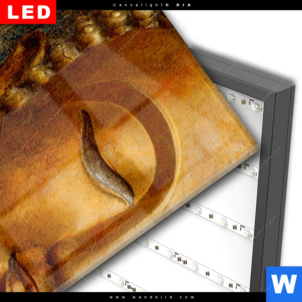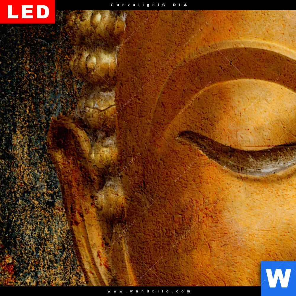 Wechselmotiv Acrylglas Canvalight® DIA | Lächelnder Buddha in Gold | Hochformat