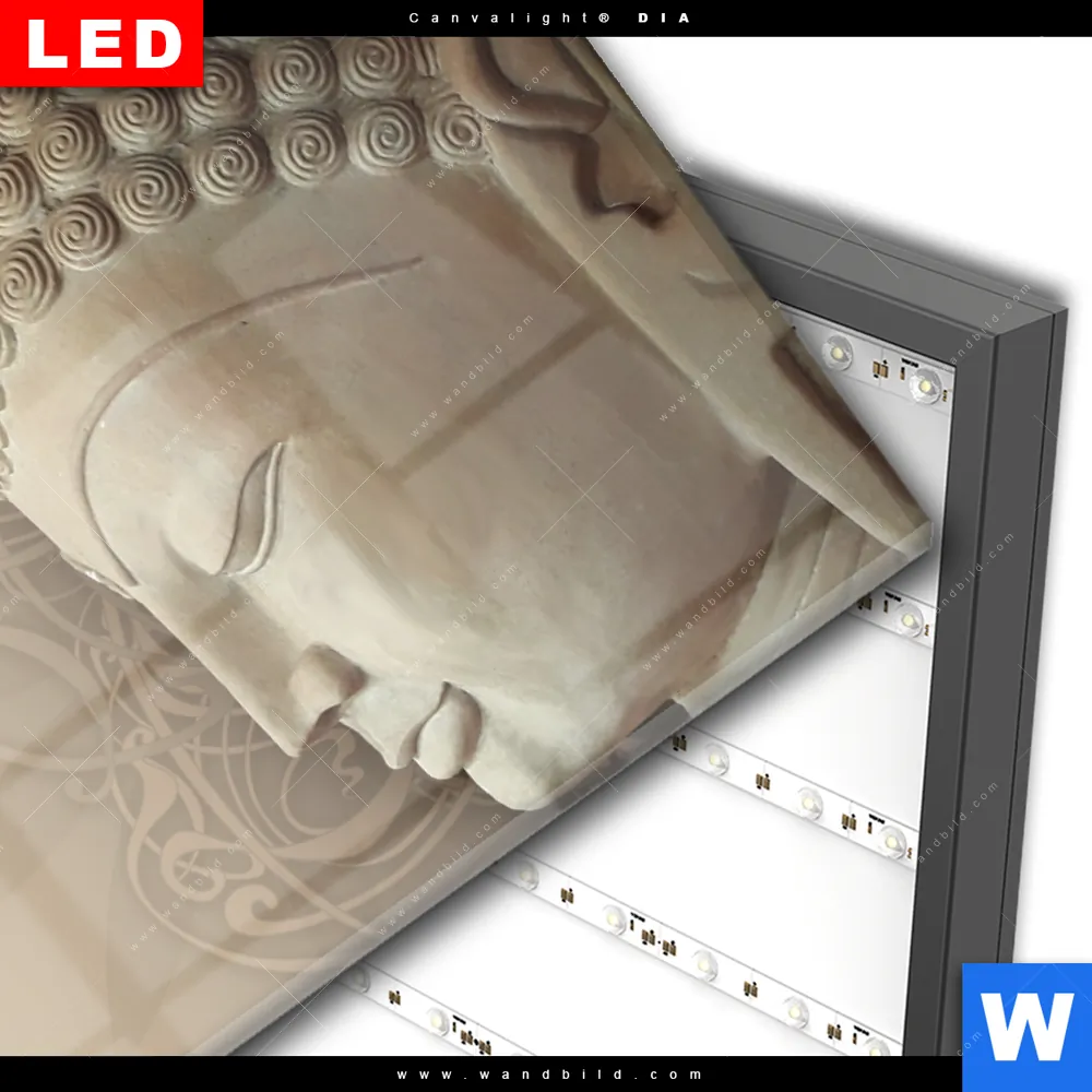 Wechselmotiv Acrylglas Canvalight® DIA | Lächelnder Buddha | Querformat