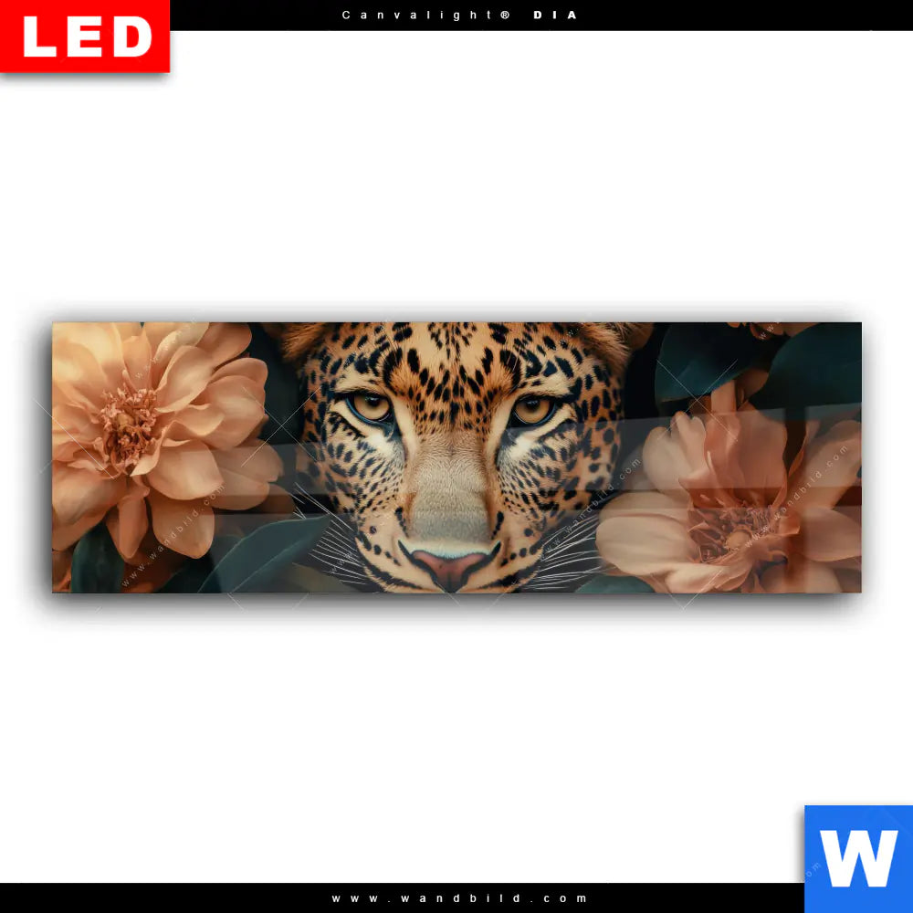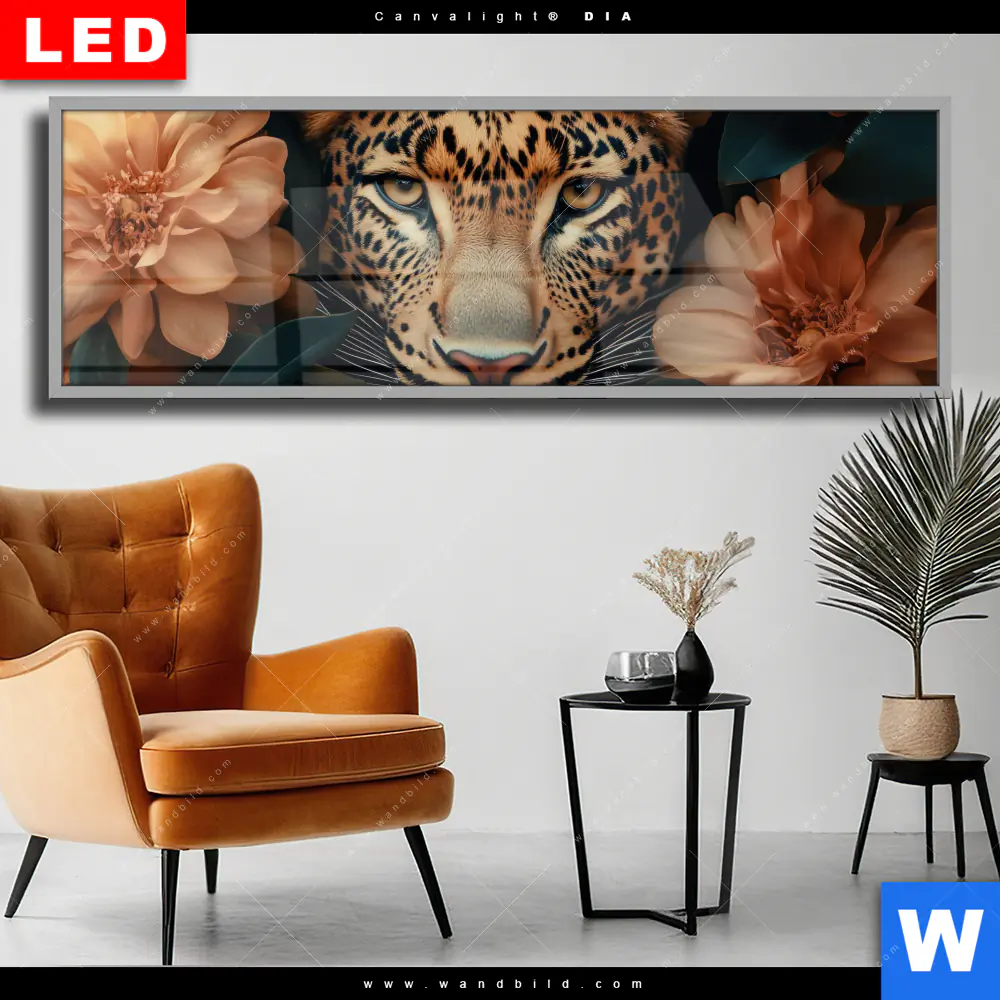 Wechselmotiv Acrylglas Canvalight® DIA | Leopard im Blütenmeer | Panorama