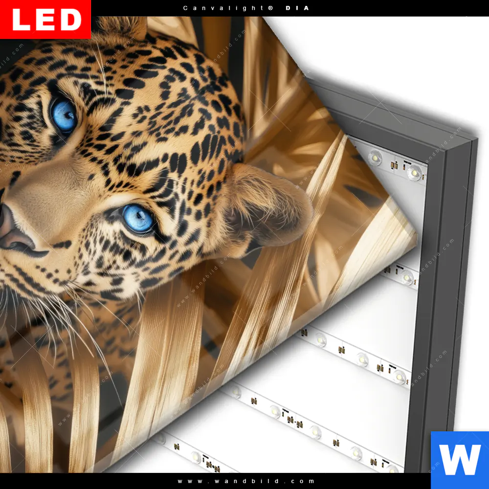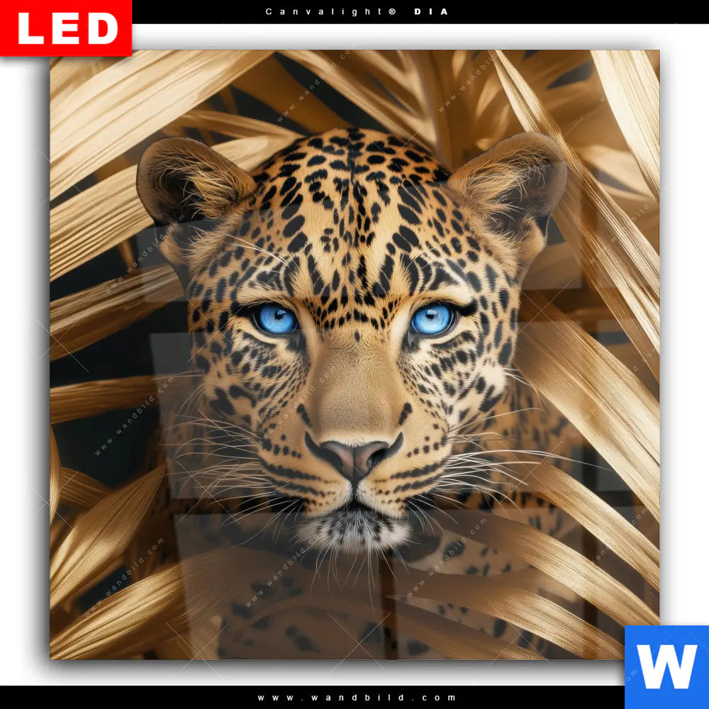Wechselmotiv Acrylglas Canvalight® DIA | Leopard im goldenen Dschungel | Quadrat