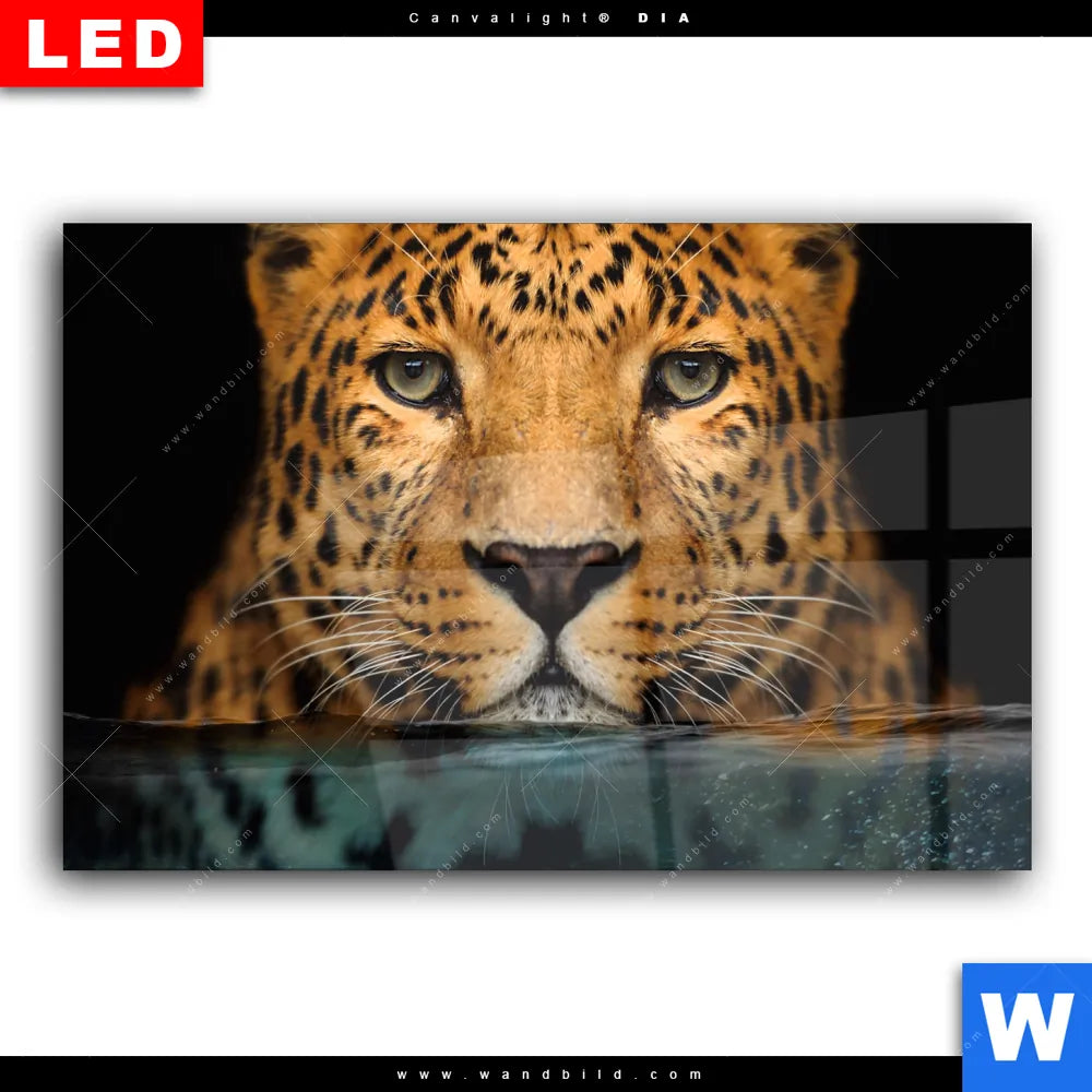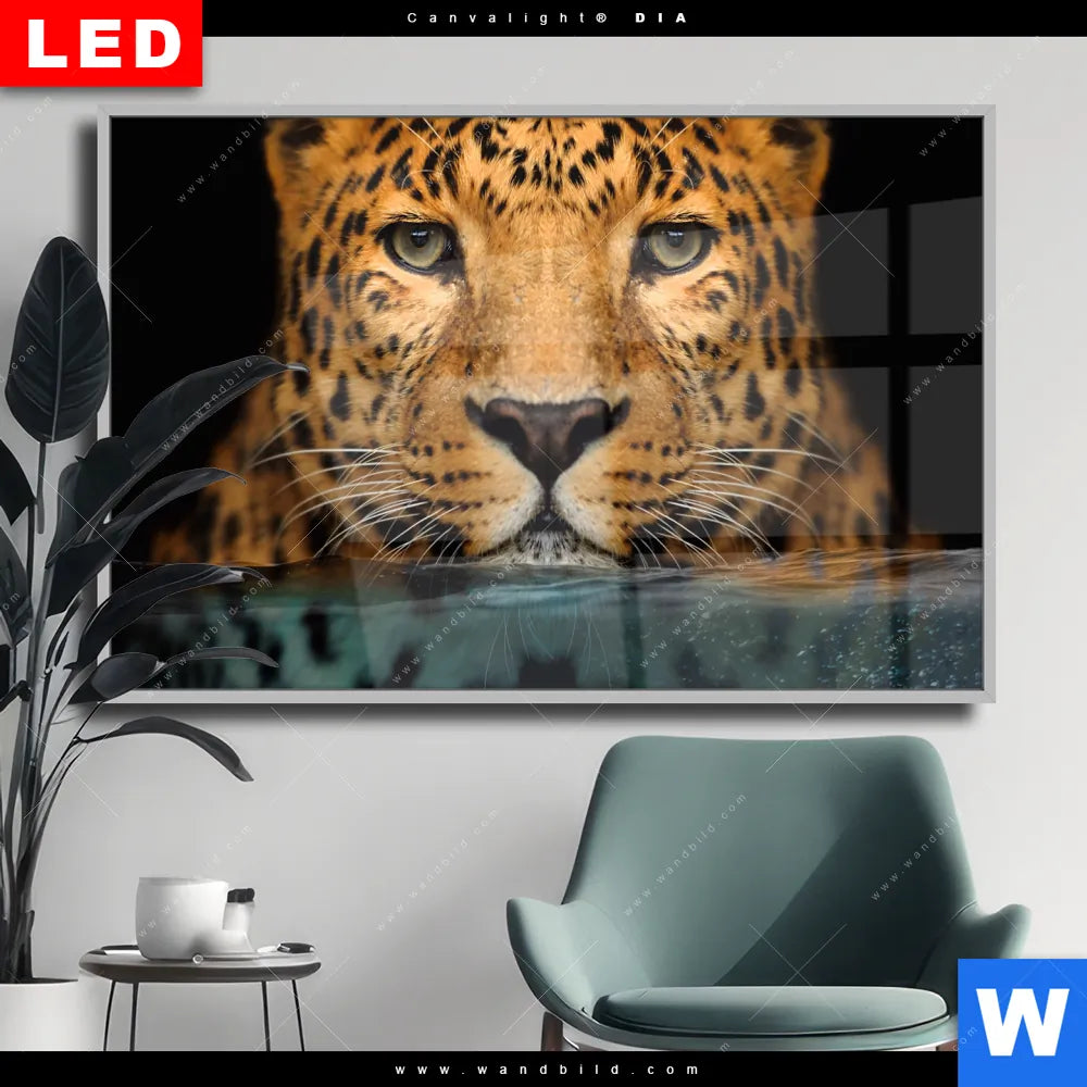 Wechselmotiv Acrylglas Canvalight® DIA | Leopard im Wasser | Querformat
