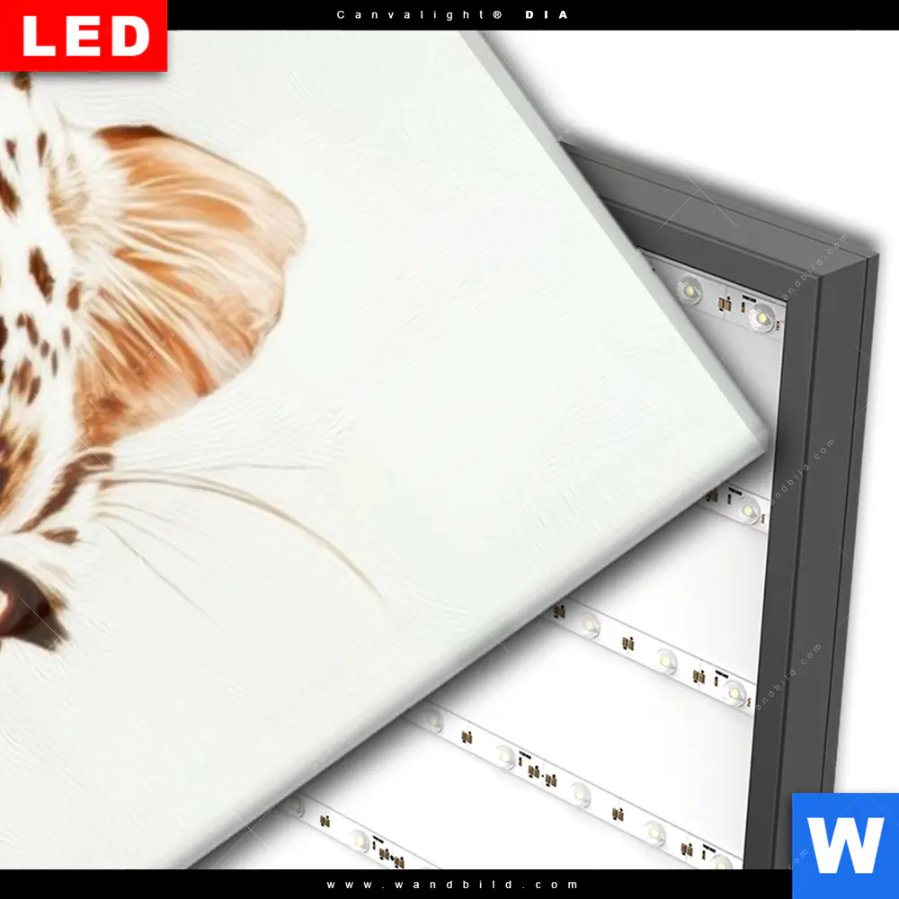 Wechselmotiv Acrylglas Canvalight® DIA | Leopard in Farbexplosion | Schmal