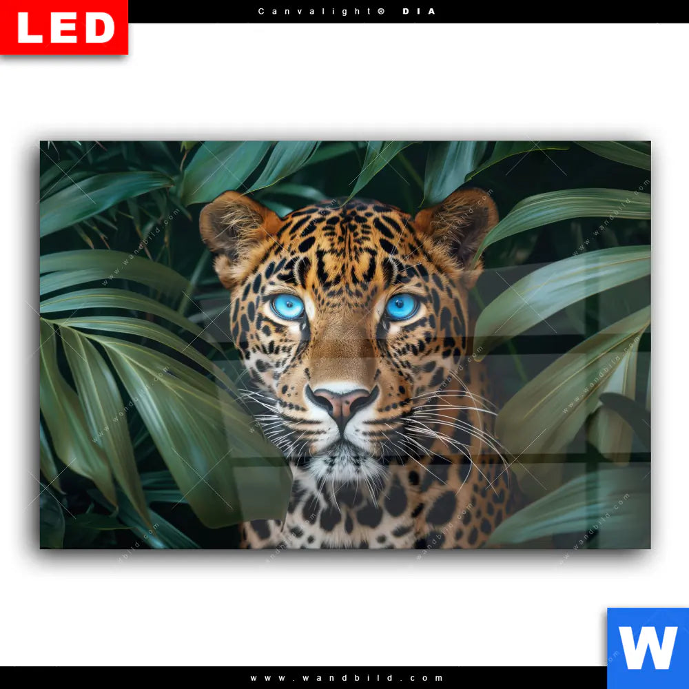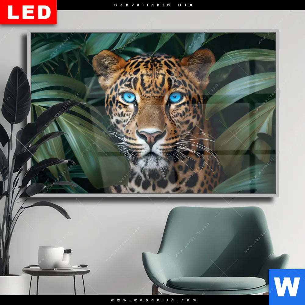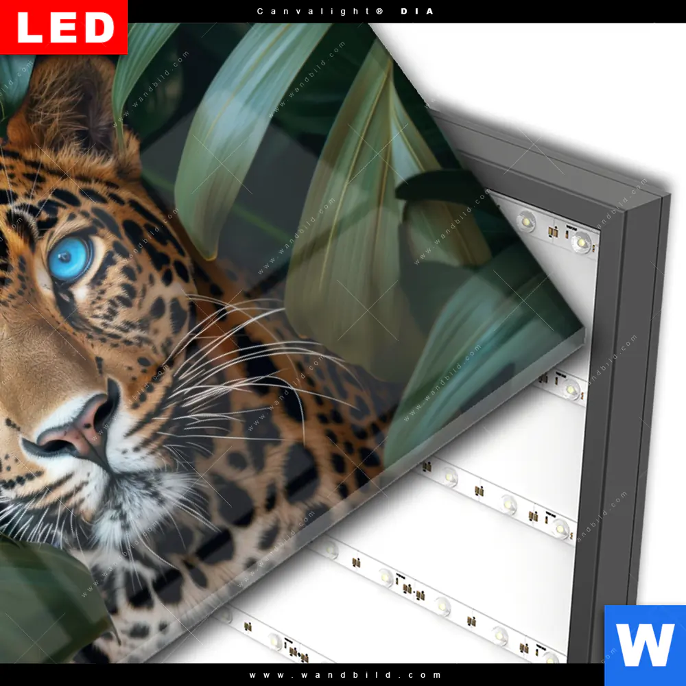 Wechselmotiv Acrylglas Canvalight® DIA | Leopard mit blauen Augen | Querformat
