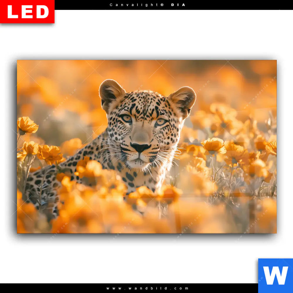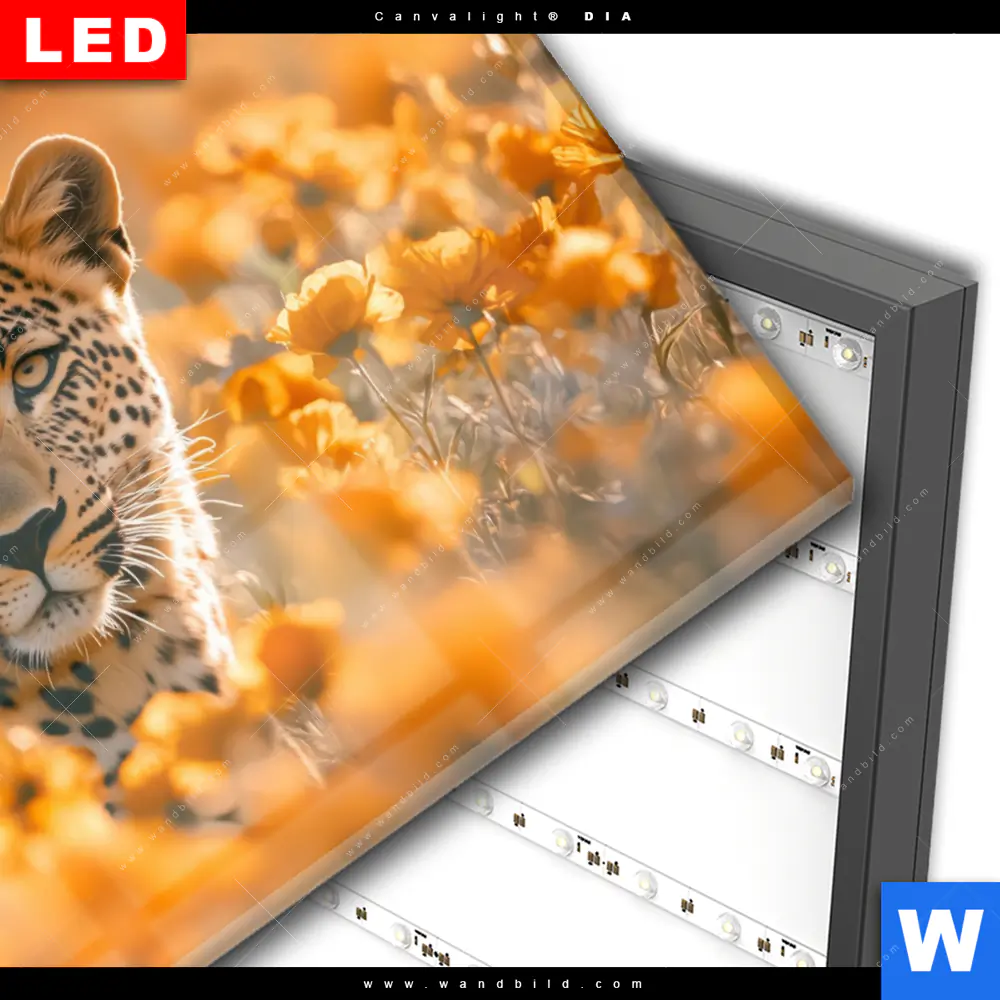 Wechselmotiv Acrylglas Canvalight® DIA | Leopardentraum in Orange | Querformat
