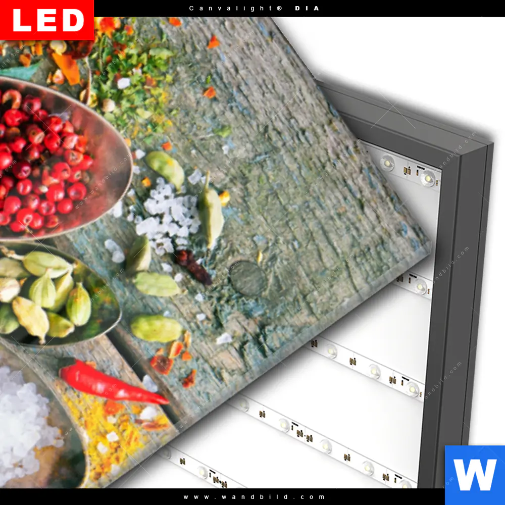 Wechselmotiv Acrylglas Canvalight® DIA | Löffel mit Kräutern und Gewürzen | Schmal